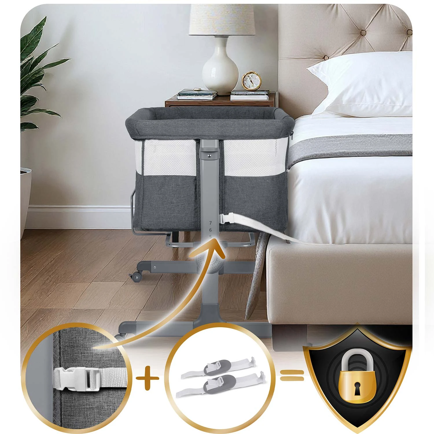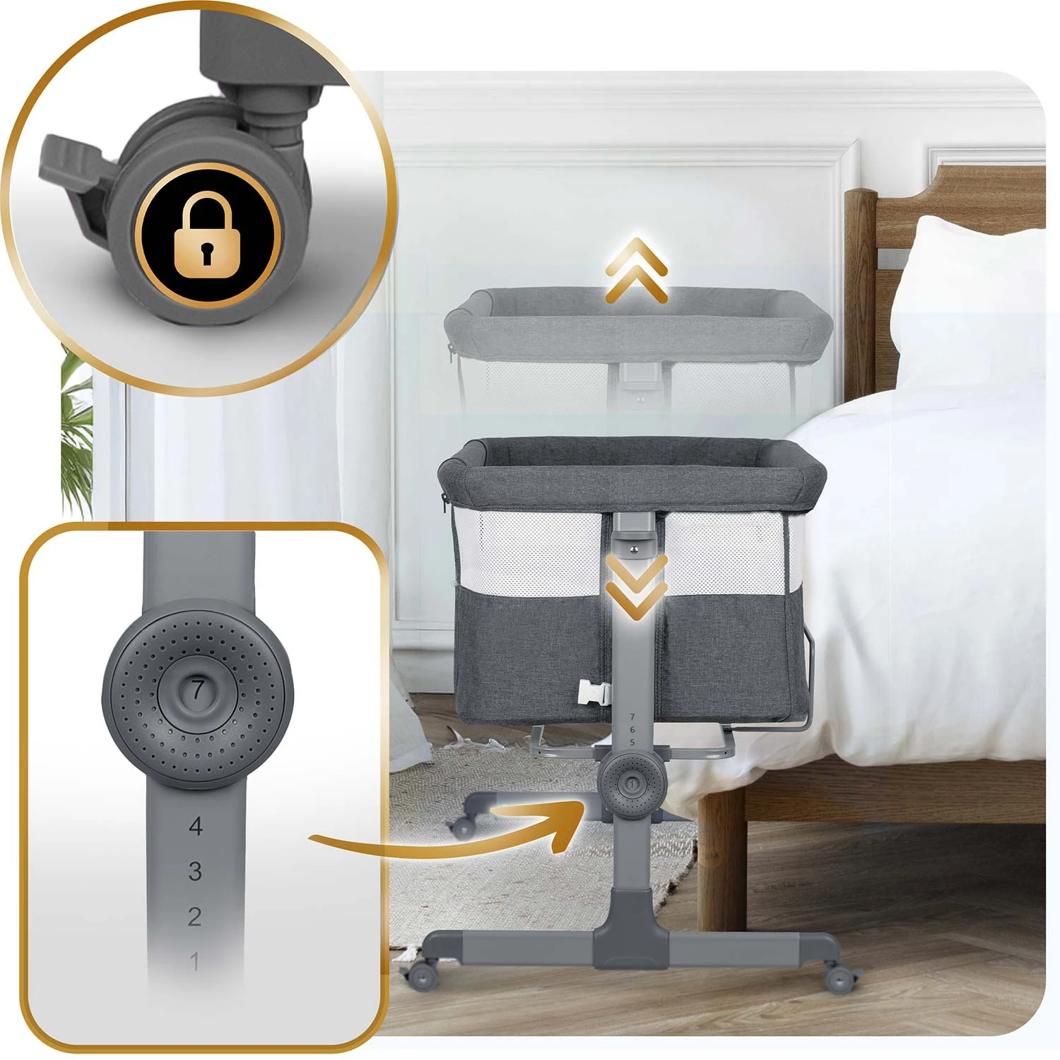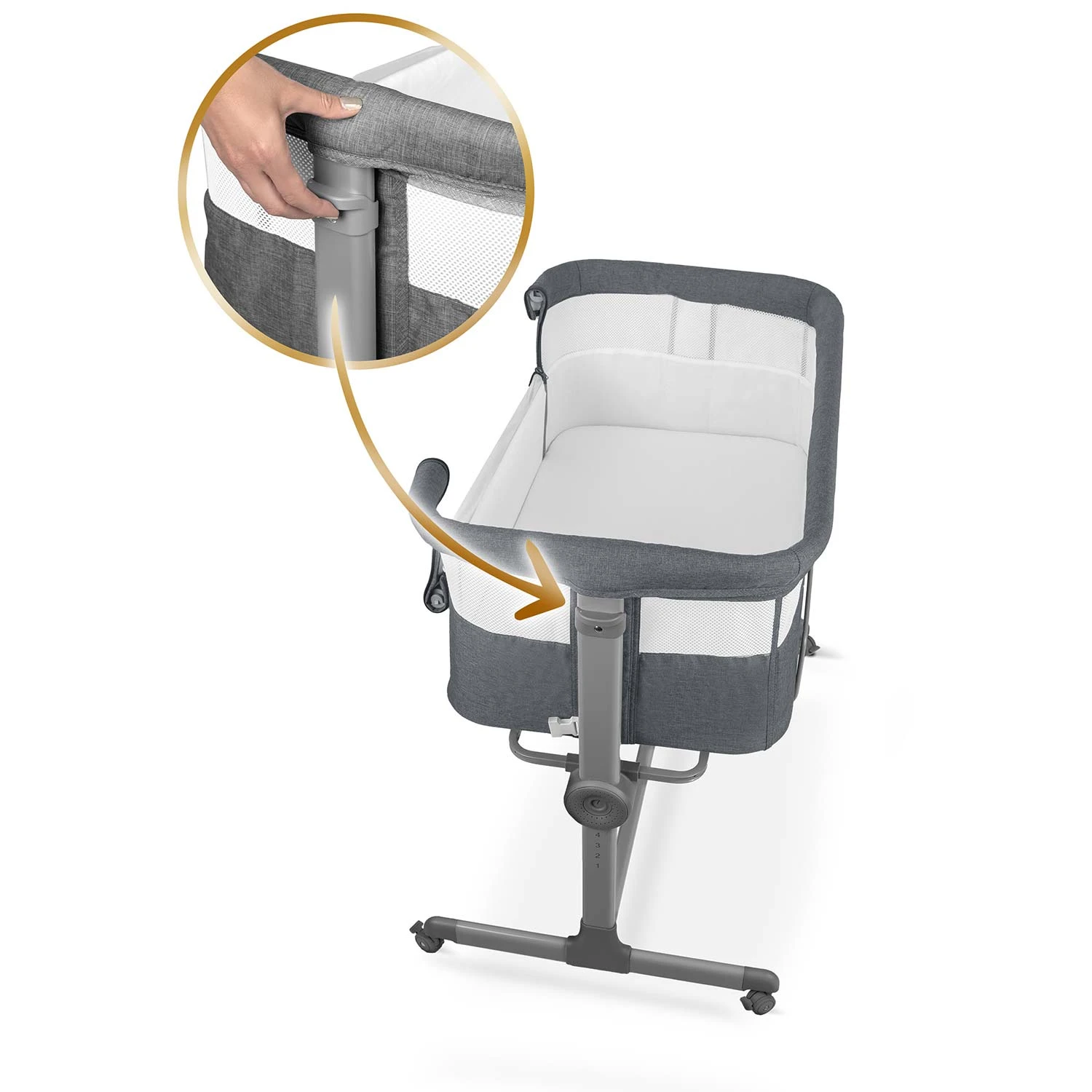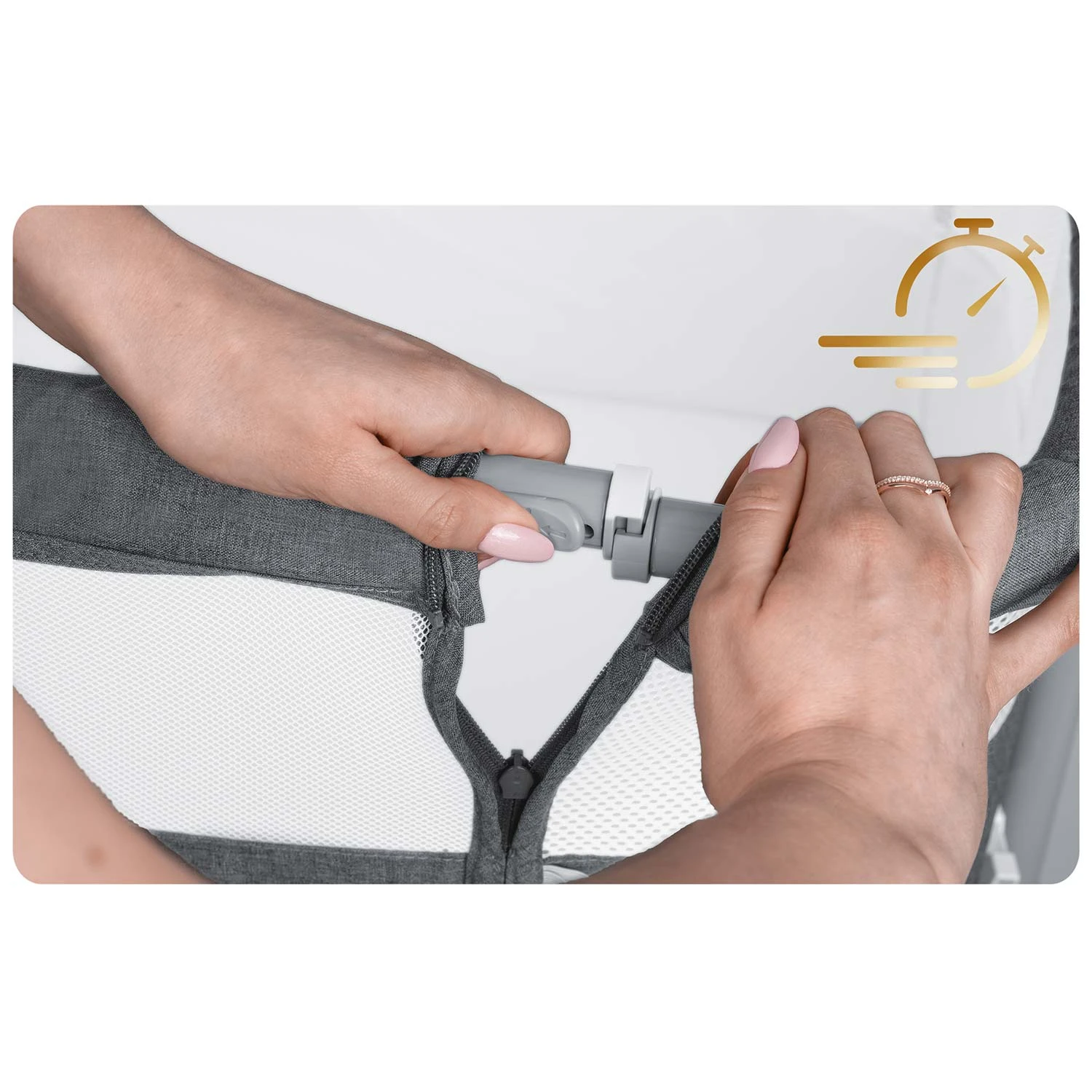 Łóżeczko dostawne umożliwia matce łatwe karmienie w nocy, bez konieczności wstawania i przechodzenia do innego pokoju. Dzięki regulacji łatwo dostosujesz wysokość łóżeczka do twojego materaca.