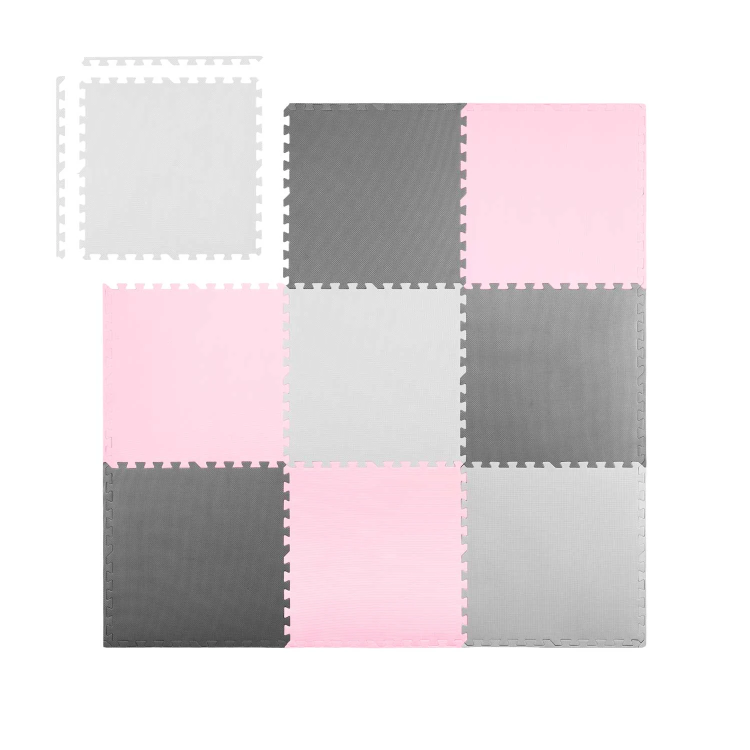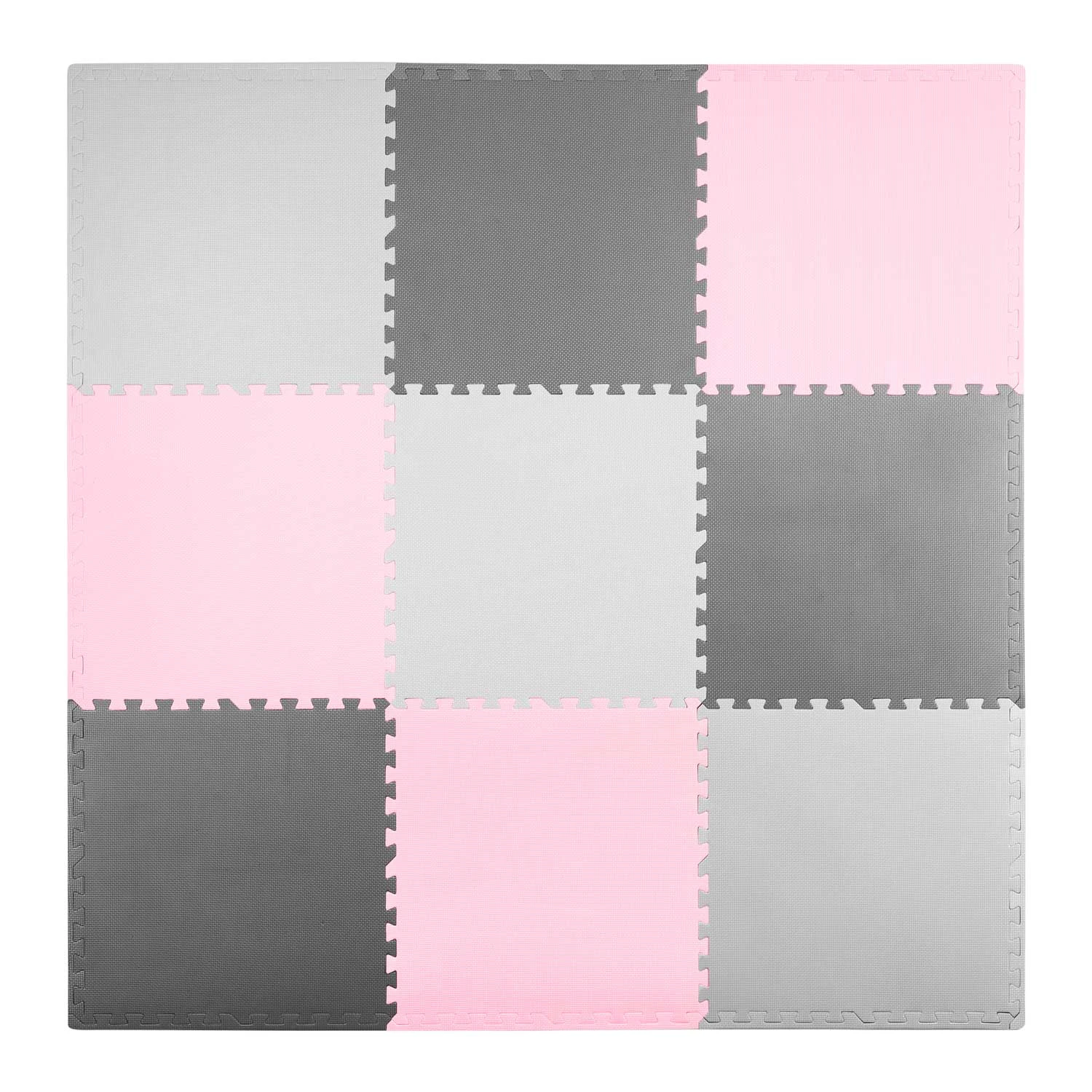 Mata piankowa puzzle 180x180cm 9 szt szaro różowa