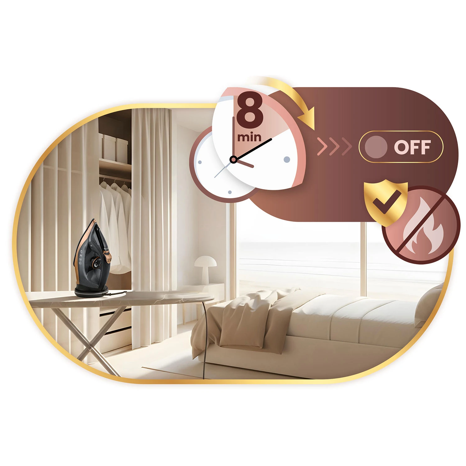 AŻ 2600 W MOCY | SAMOCZYSZCZENIE | OCHRONA PRZED PRZEGRZANIEM | POJEMNIK NA WODĘ 320 ML | PARA PIONOWA | REGULACJA TEMPERATURY | AUTO-OFF | SPRYSKIWACZ | PODKŁADKA ŁADUJĄCA