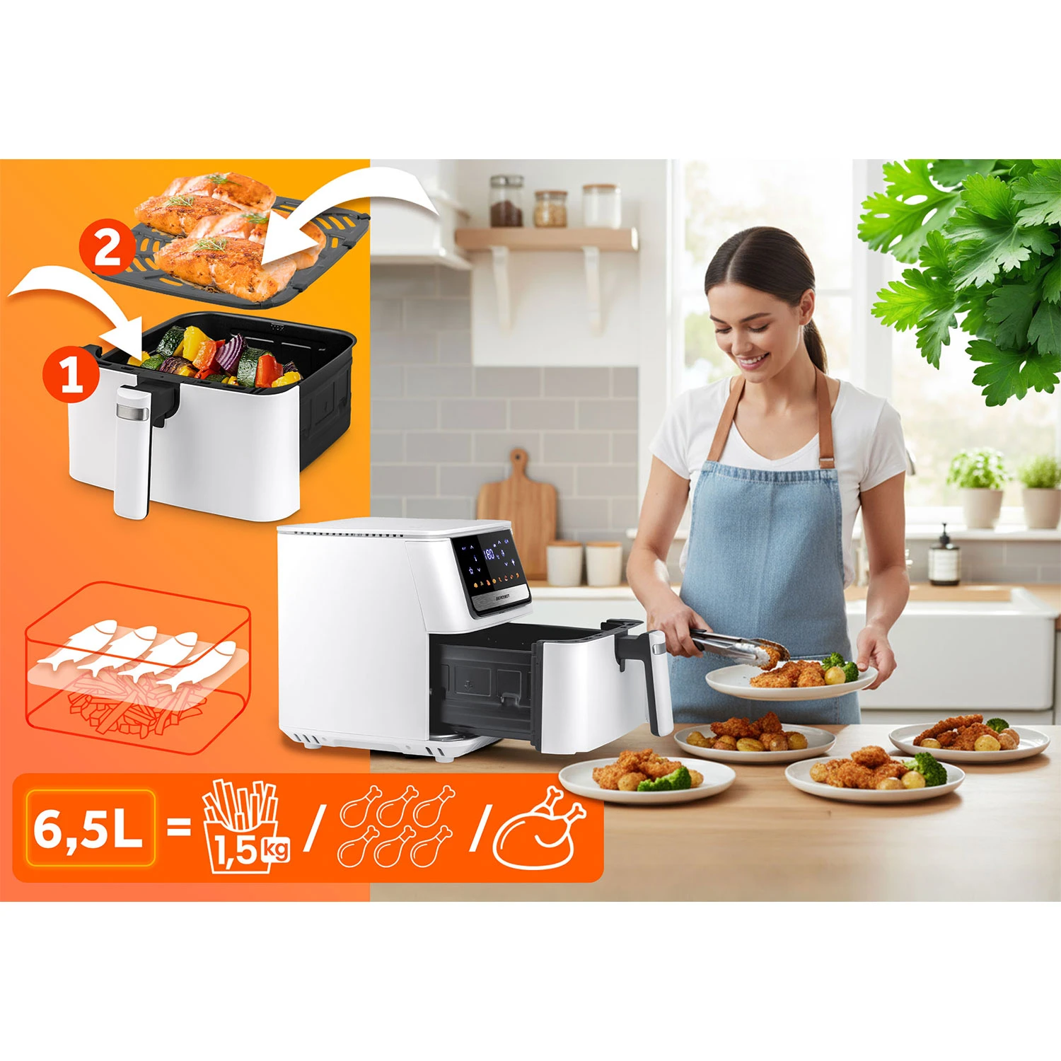 ✅ 6,5 l pojemności – idealna dla całej rodziny.