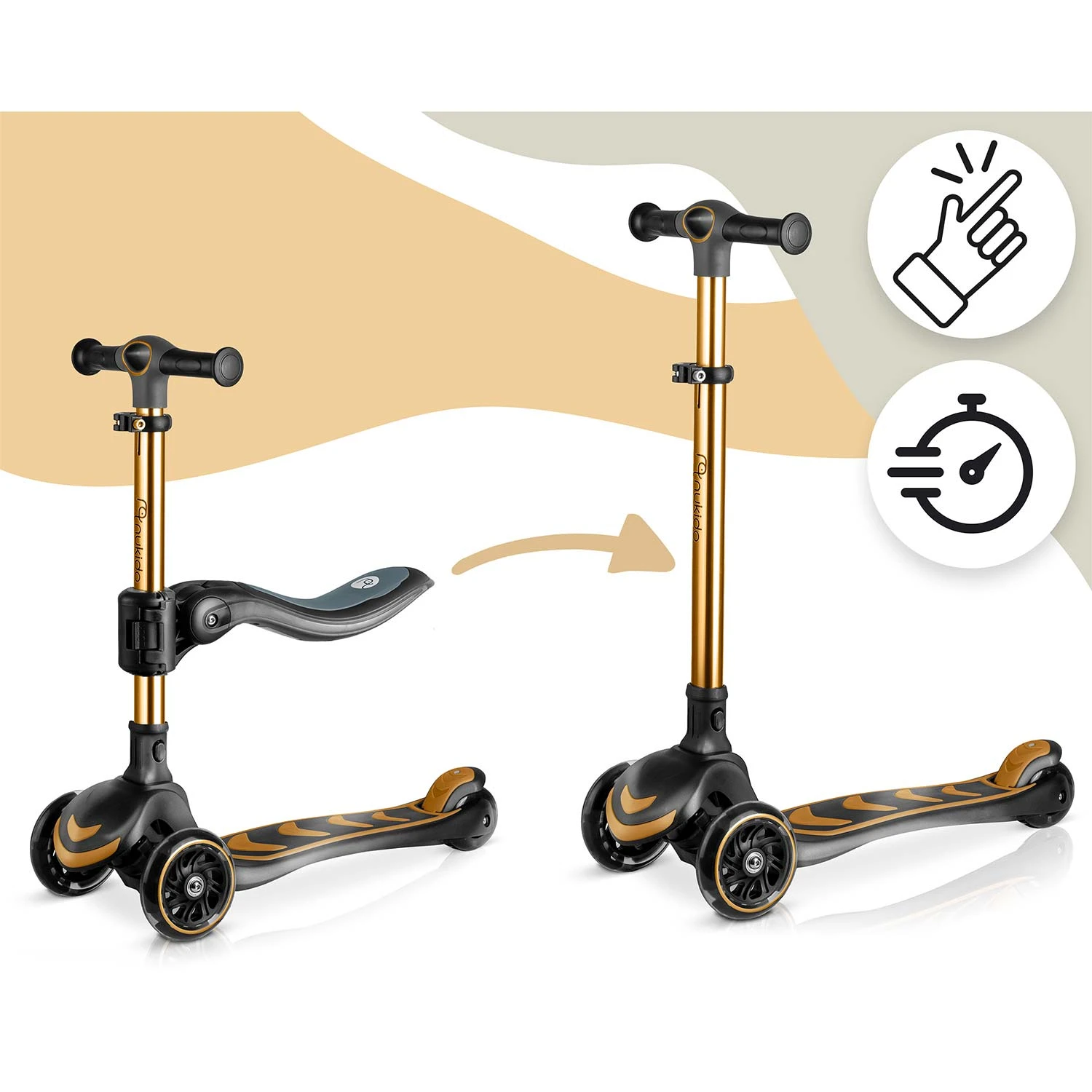 Hulajnoga trójkołowa dla dzieci balansowa siedzisko Nukido Flippo - złota