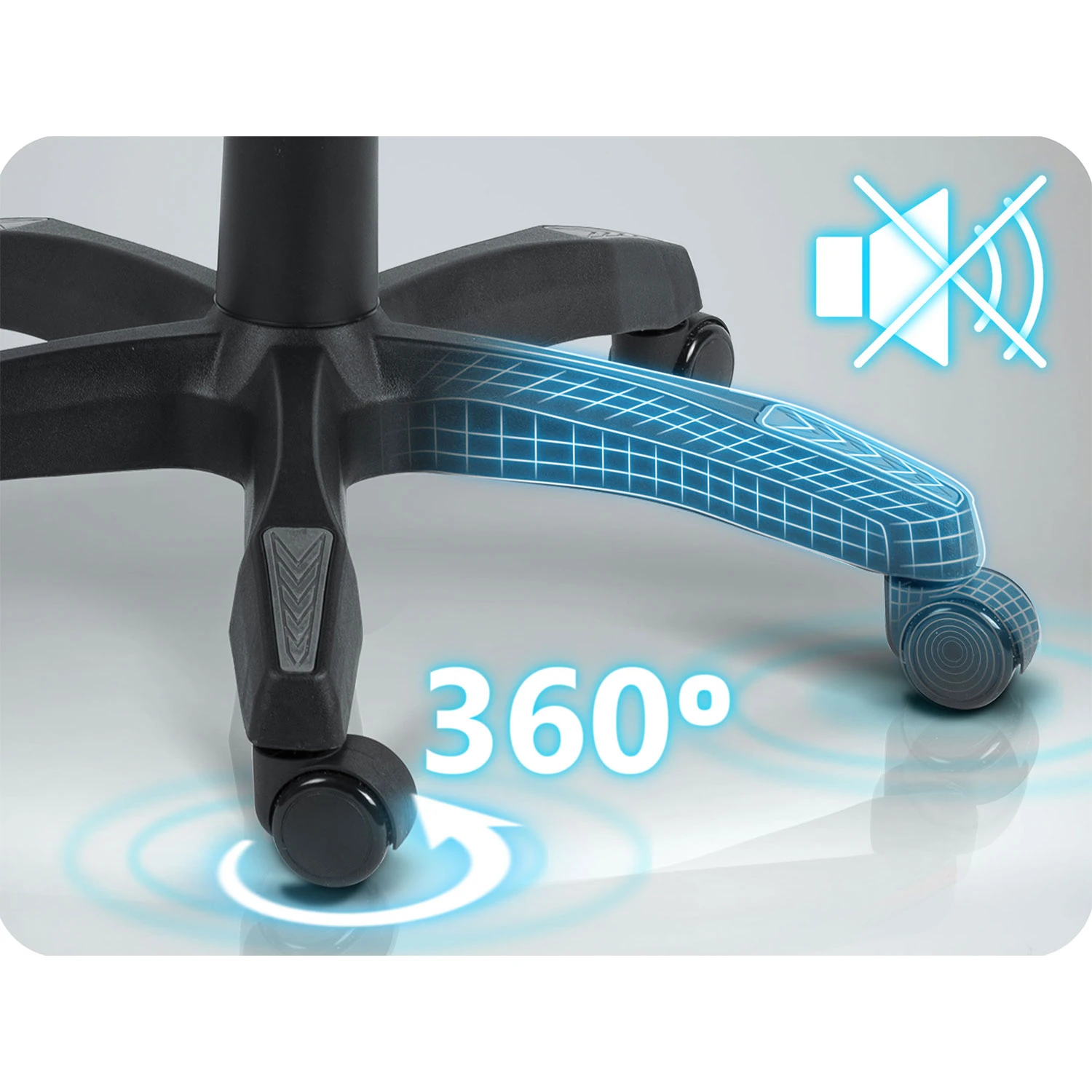 Ciche, powlekane kółka 360° umożliwiają płynne przesuwanie bez hałasu i bez zarysowań podłogi.