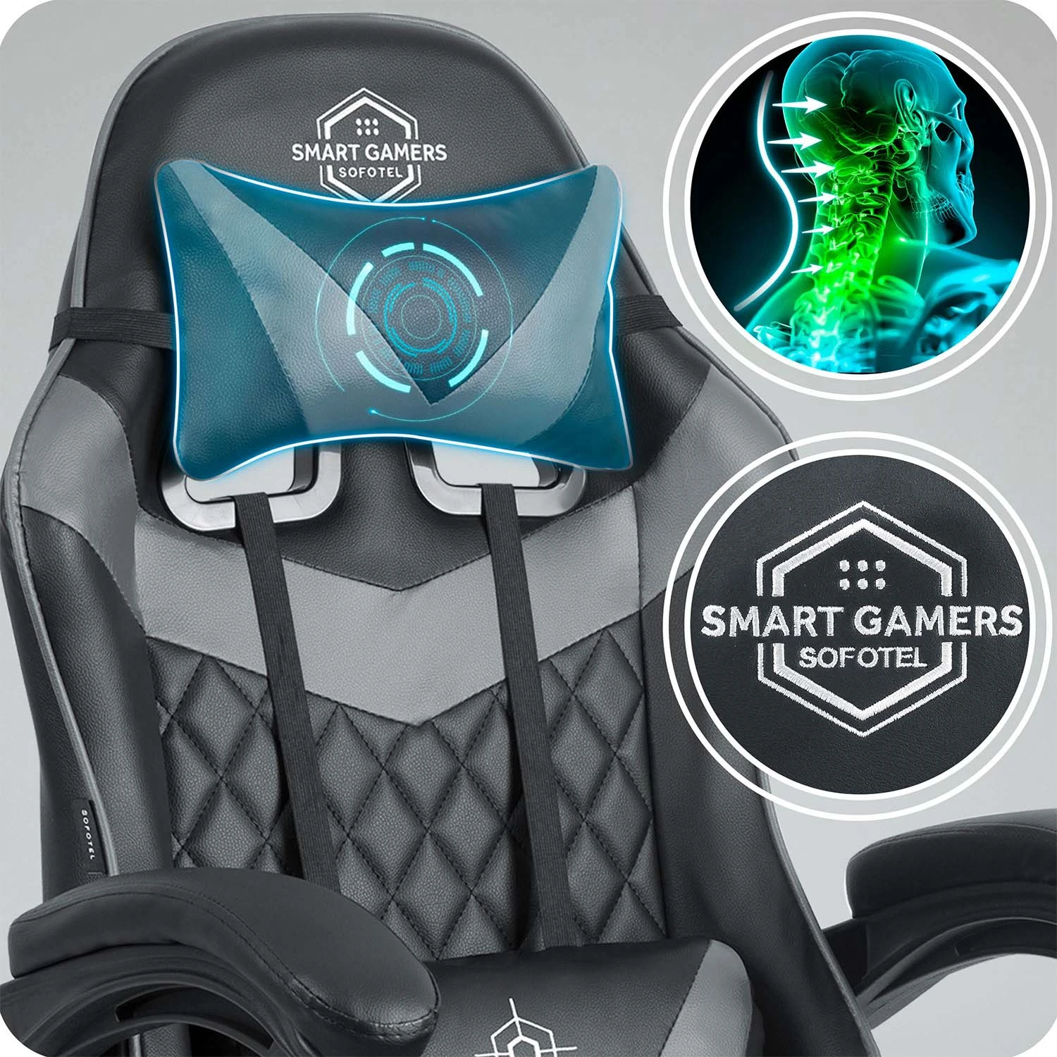 Wyprofilowana poduszka lędźwiowa oraz poduszka pod głowę pomagają utrzymać ergonomiczną, bezpieczną postawę. Poduszki dopasowują się do kształtu Twojej sylwetki, gwarantując wygodę podczas siedzenia.