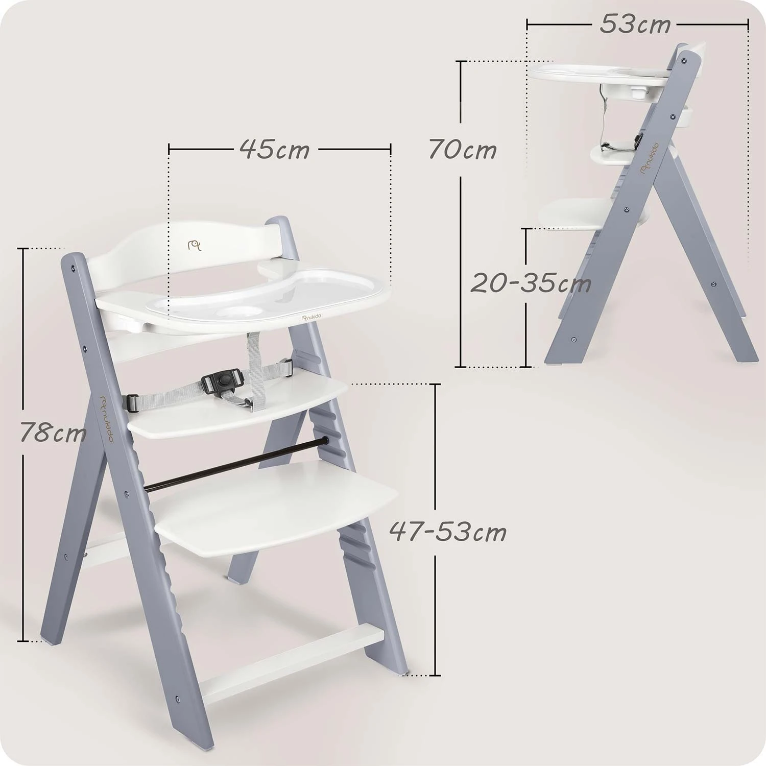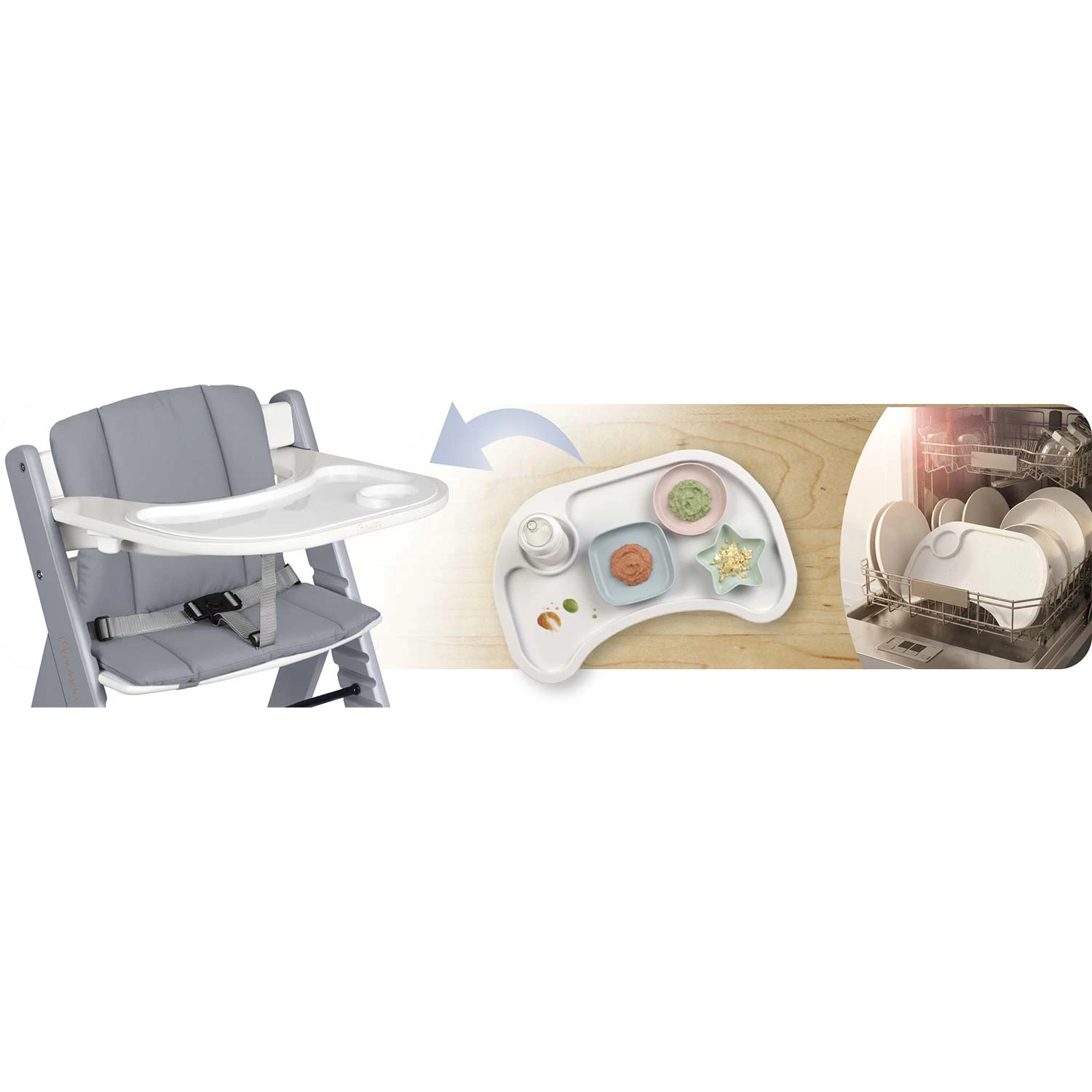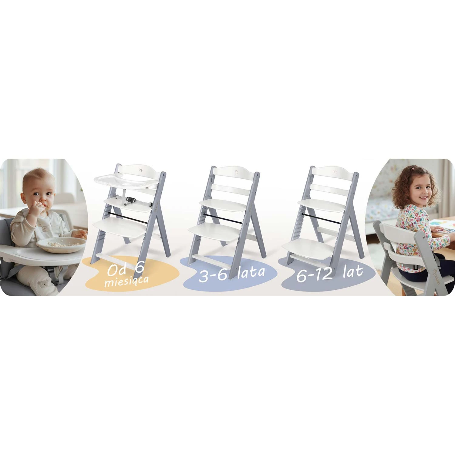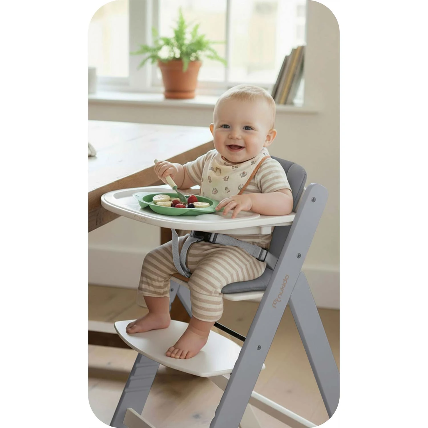 Dzięki specjalnemu zestawowi z pasami bezpieczeństwa i wygodną poduszką staje się bezpiecznym i komfortowym pierwszym krzesełkiem dla Twojego maluszka. Idealne do pierwszych posiłków i wspólnych chwil przy stole.