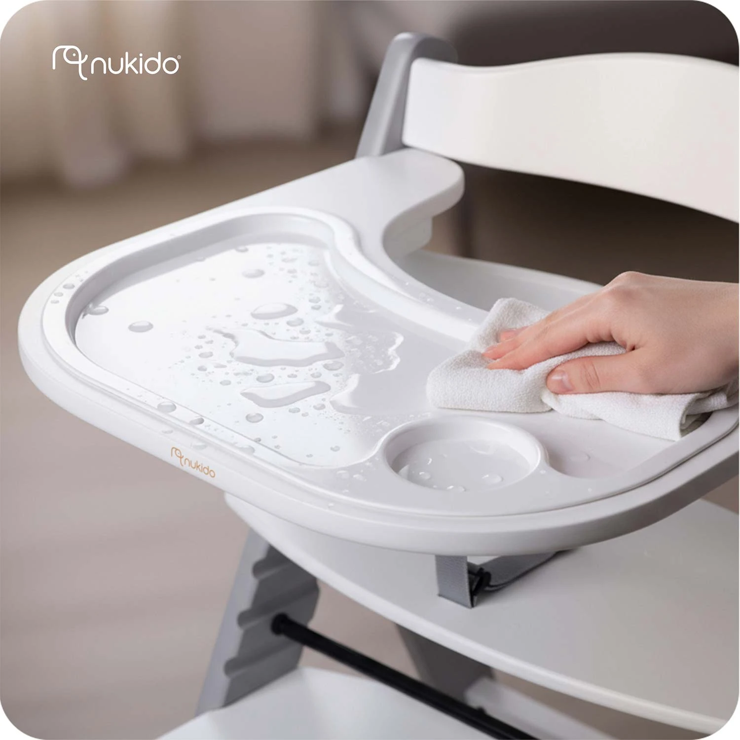 Zdejmowana tacka znacząco ułatwia utrzymanie czystości. Lakierowane drewno topolowe to gwarancja jakości. Zabezpieczone drewno nie pozwoli pochłonąć plam i krzesełko szybko wróci do perfekcyjnej czystości.