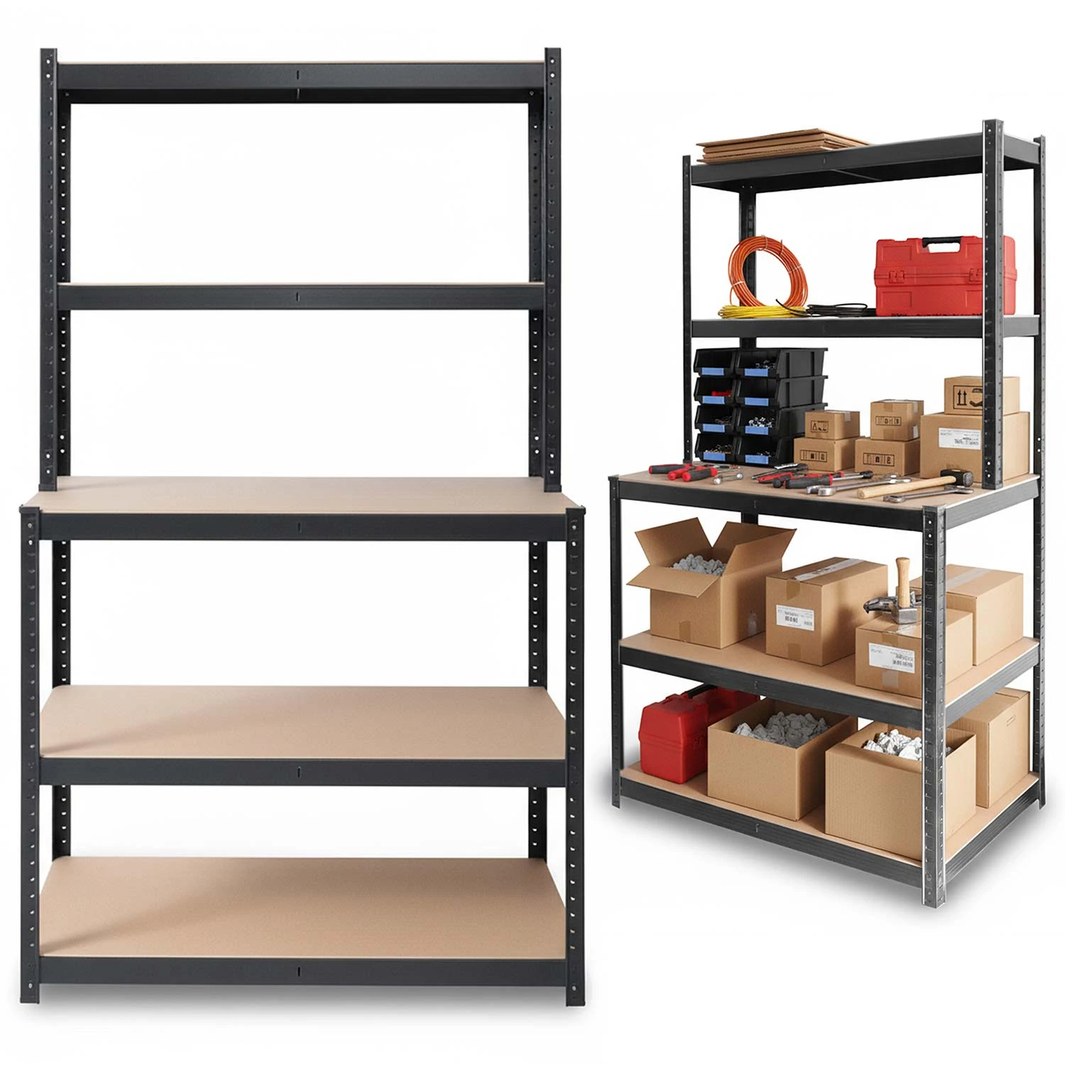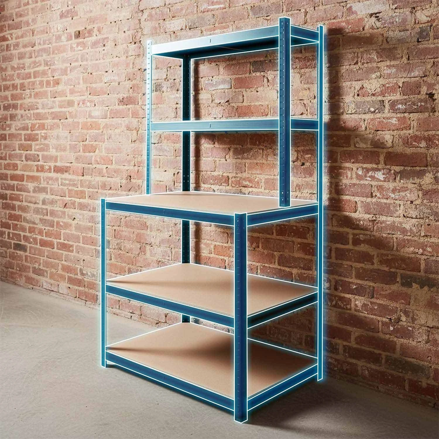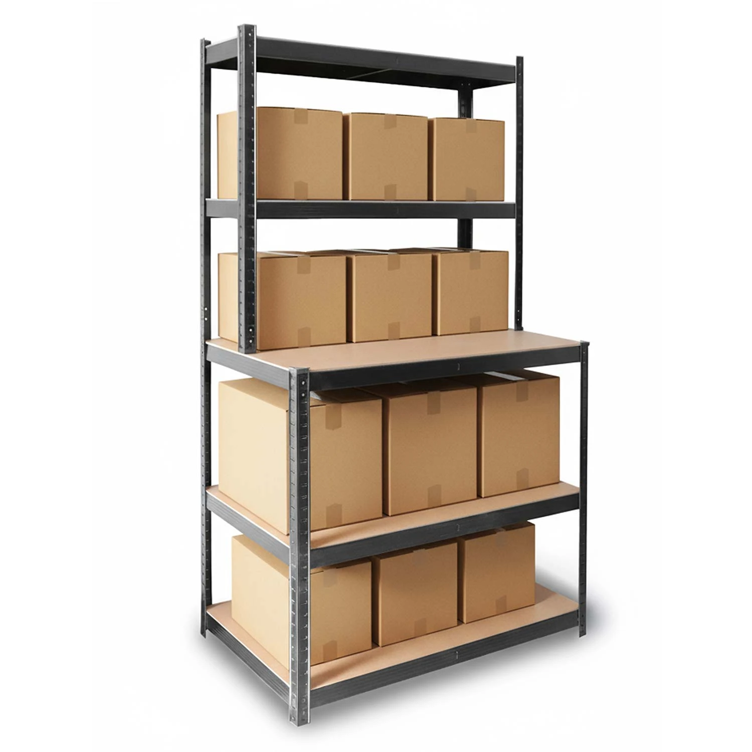 Regał składa się z 5 półek, na których możesz ułożyć produkty, kartony czy też urządzenia.