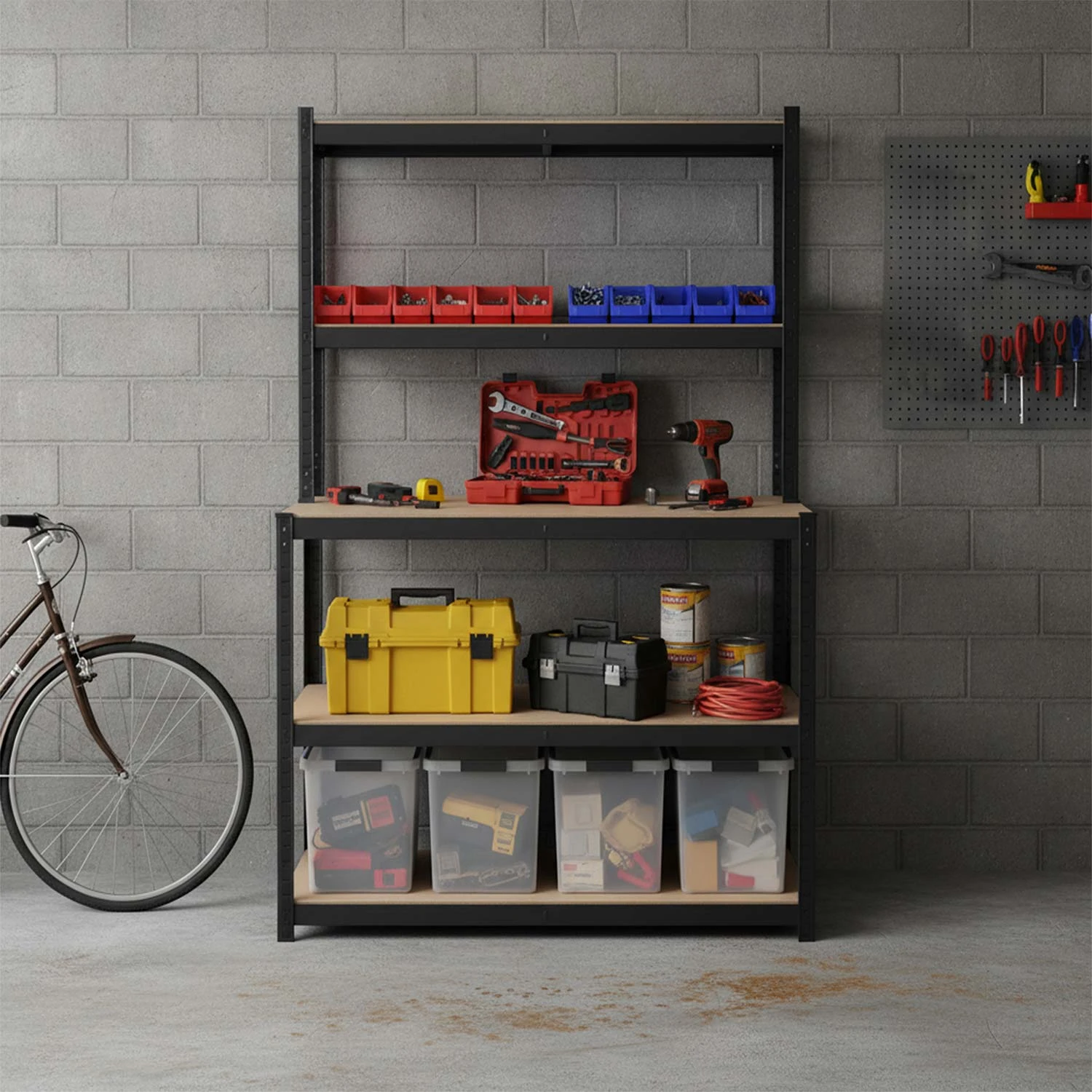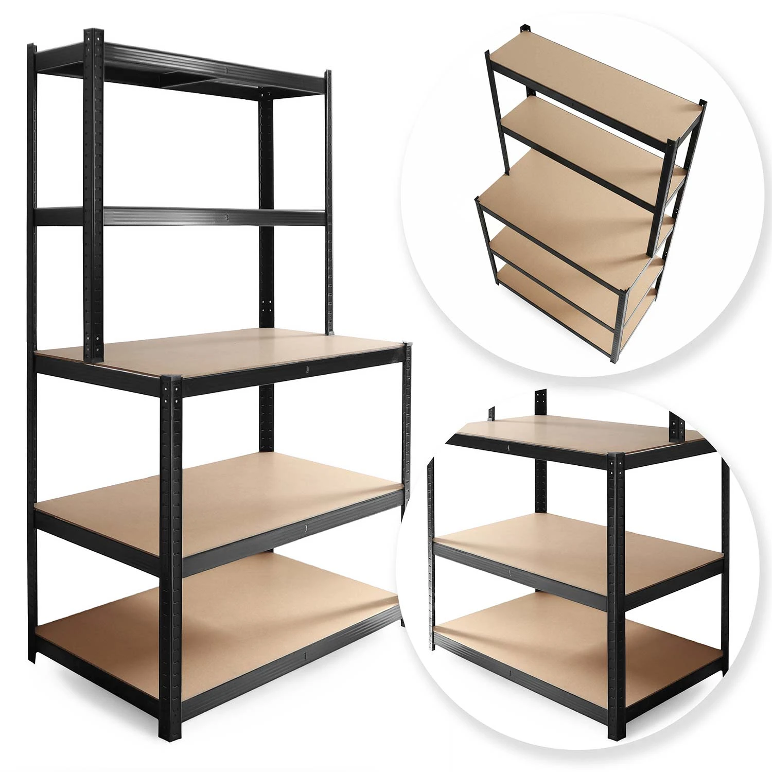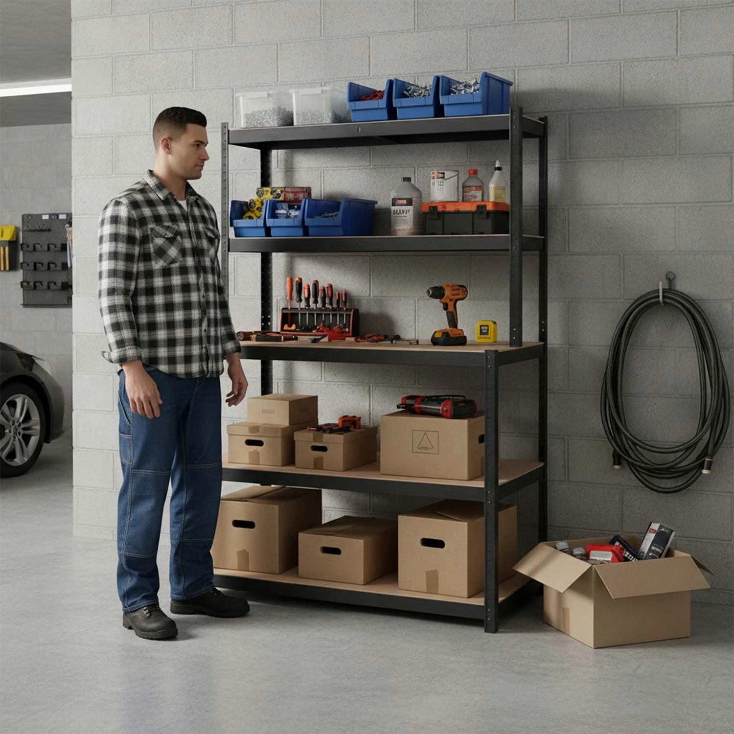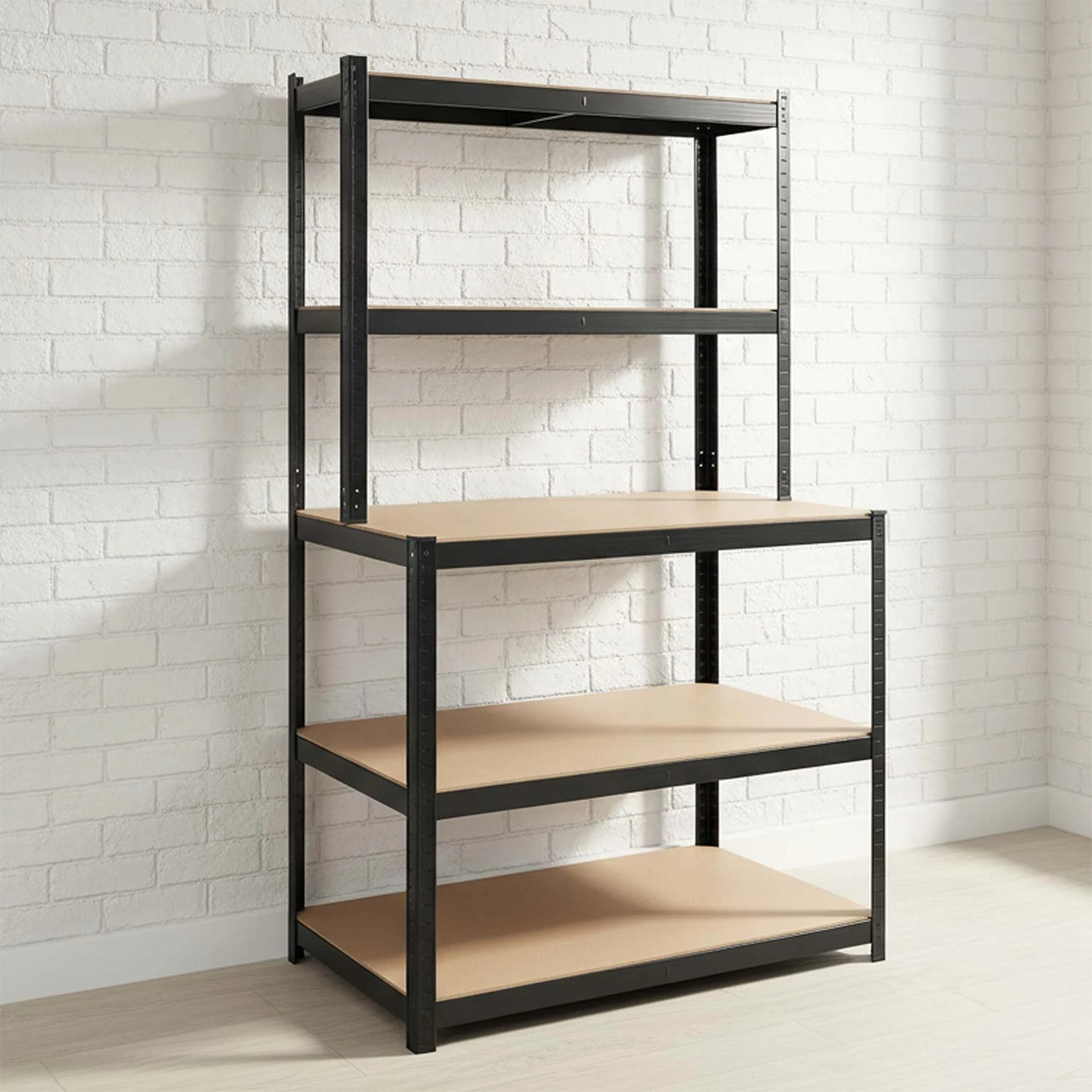 Regał składa się z 5 półek, na których możesz ułożyć produkty, kartony czy też urządzenia.