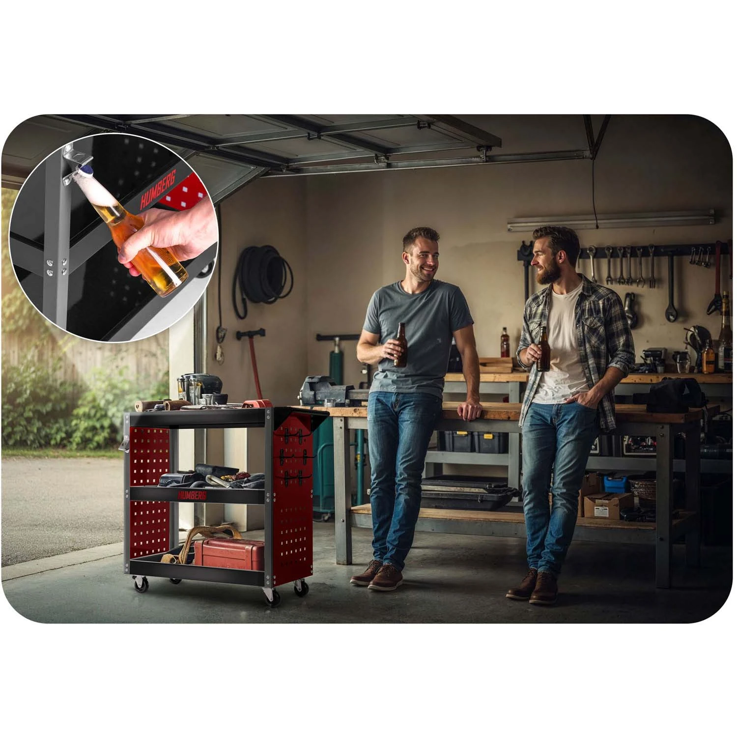 Wózek jest bardzo poręczny i został wyposażony w profilowaną rączkę. Zajmuje niewiele miejsca podczas przechowywania. Dodatkowo wózek posiada praktyczne uchwyty na narzędzia, dzięki któremu najczęściej używane sprzęty zawsze masz pod ręką.