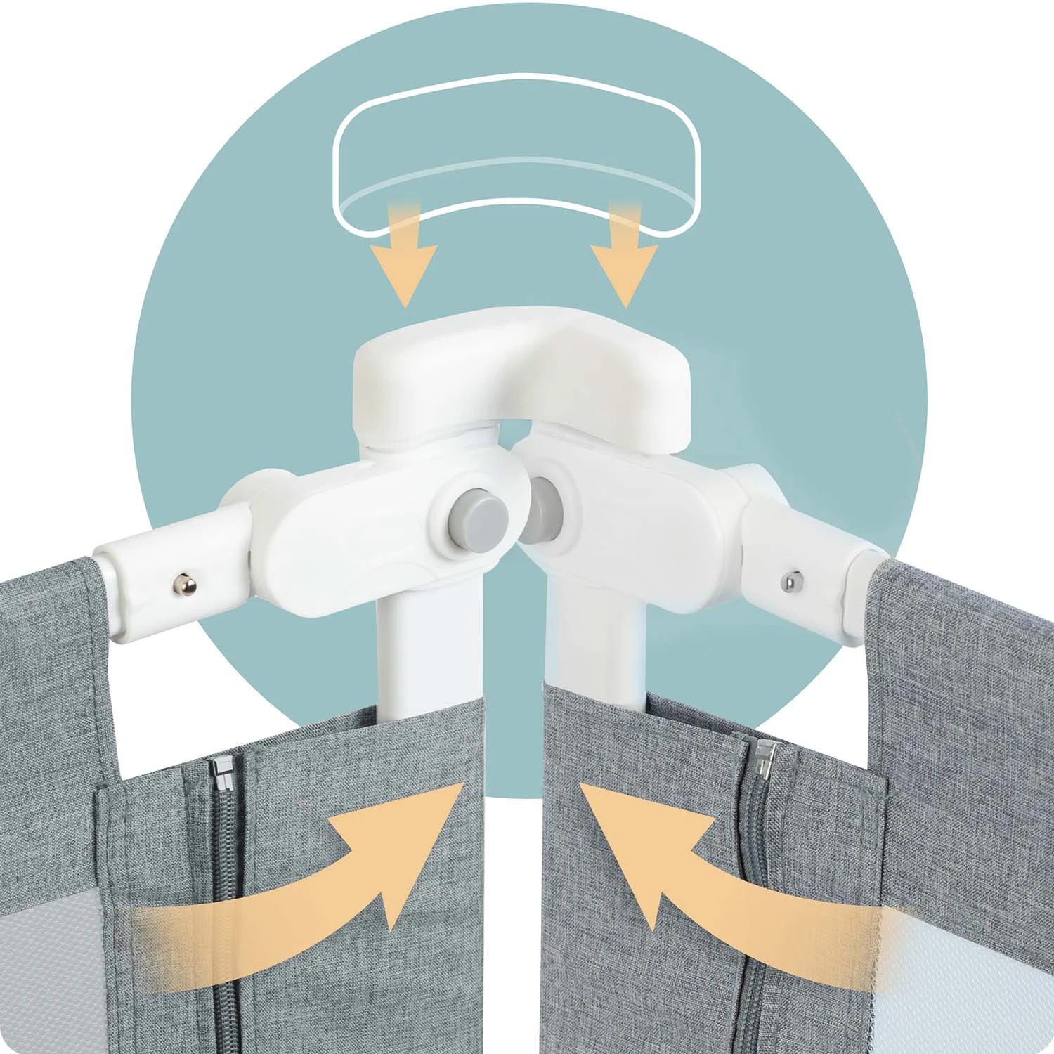 Barierka została wyposażona w trwałą i przewiewną siatkę, która pozwoli na obserwację śpiącego dziecka.