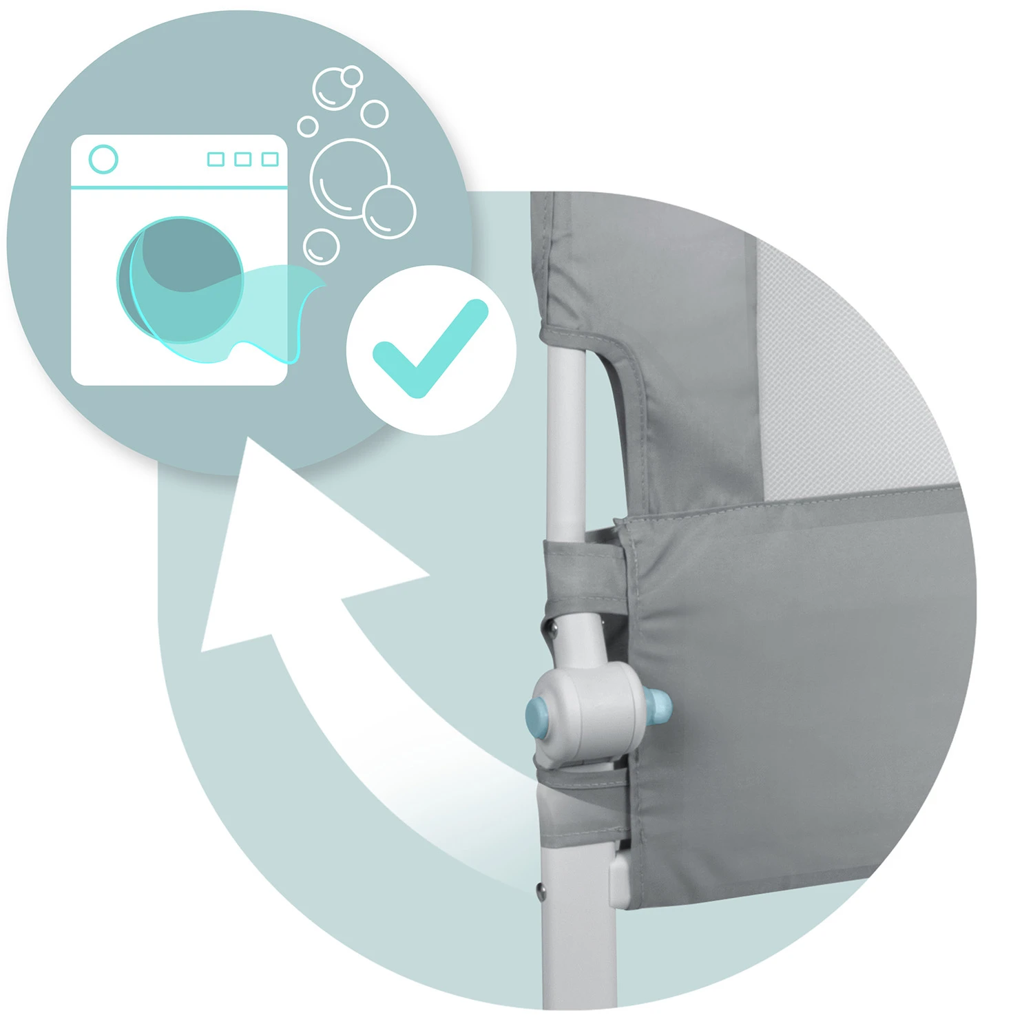 Barierka została wyposażona w trwałą i przewiewną siatkę, która pozwoli na obserwację śpiącego dziecka.