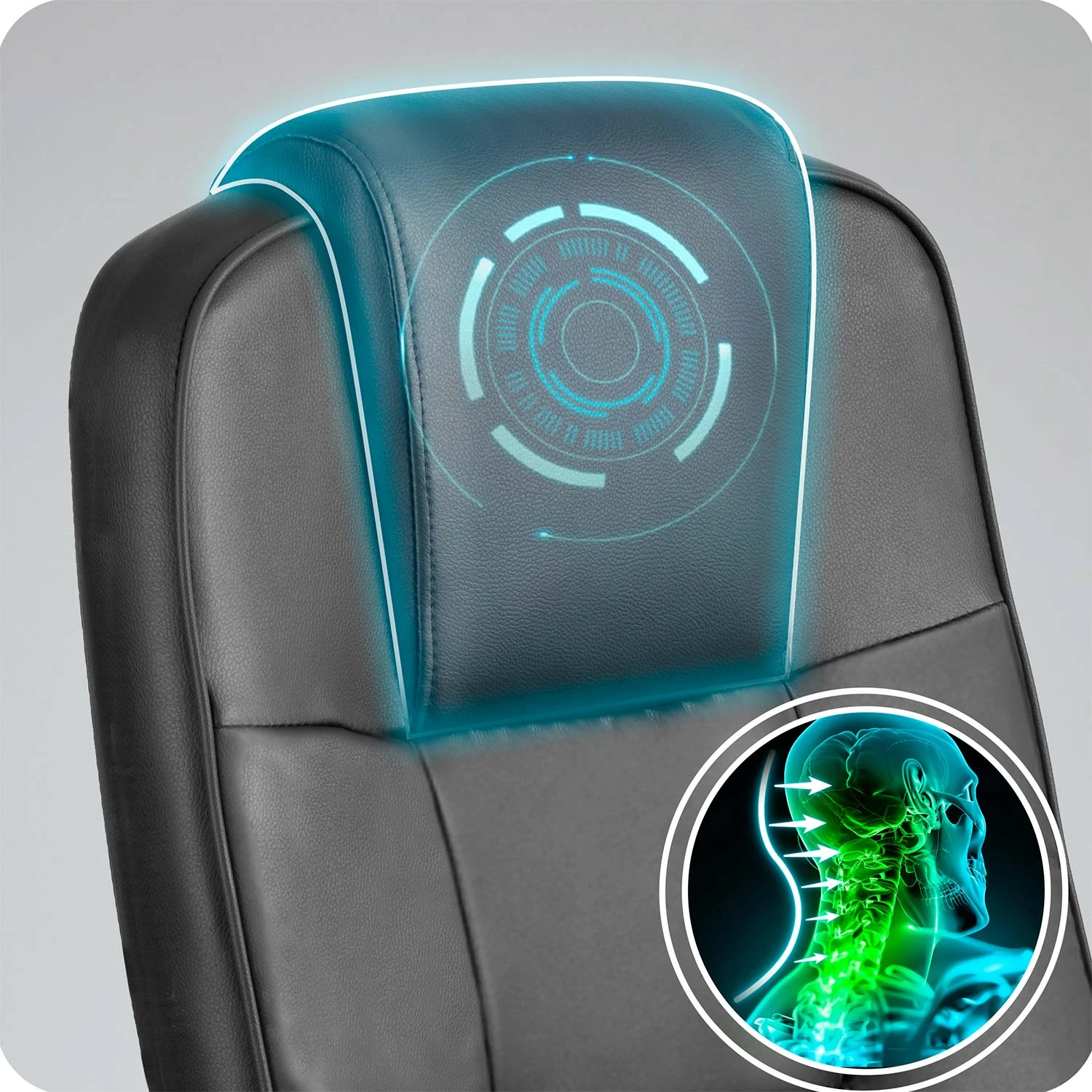 Wyprofilowana część lędźwiowa pomaga utrzymać ergonomiczną bezpieczną postawę. Wyprofilowany zagłówek równo rozkłada nacisk, odciążając mięśnie i zapobiegając bólom odcinka szyjnego.