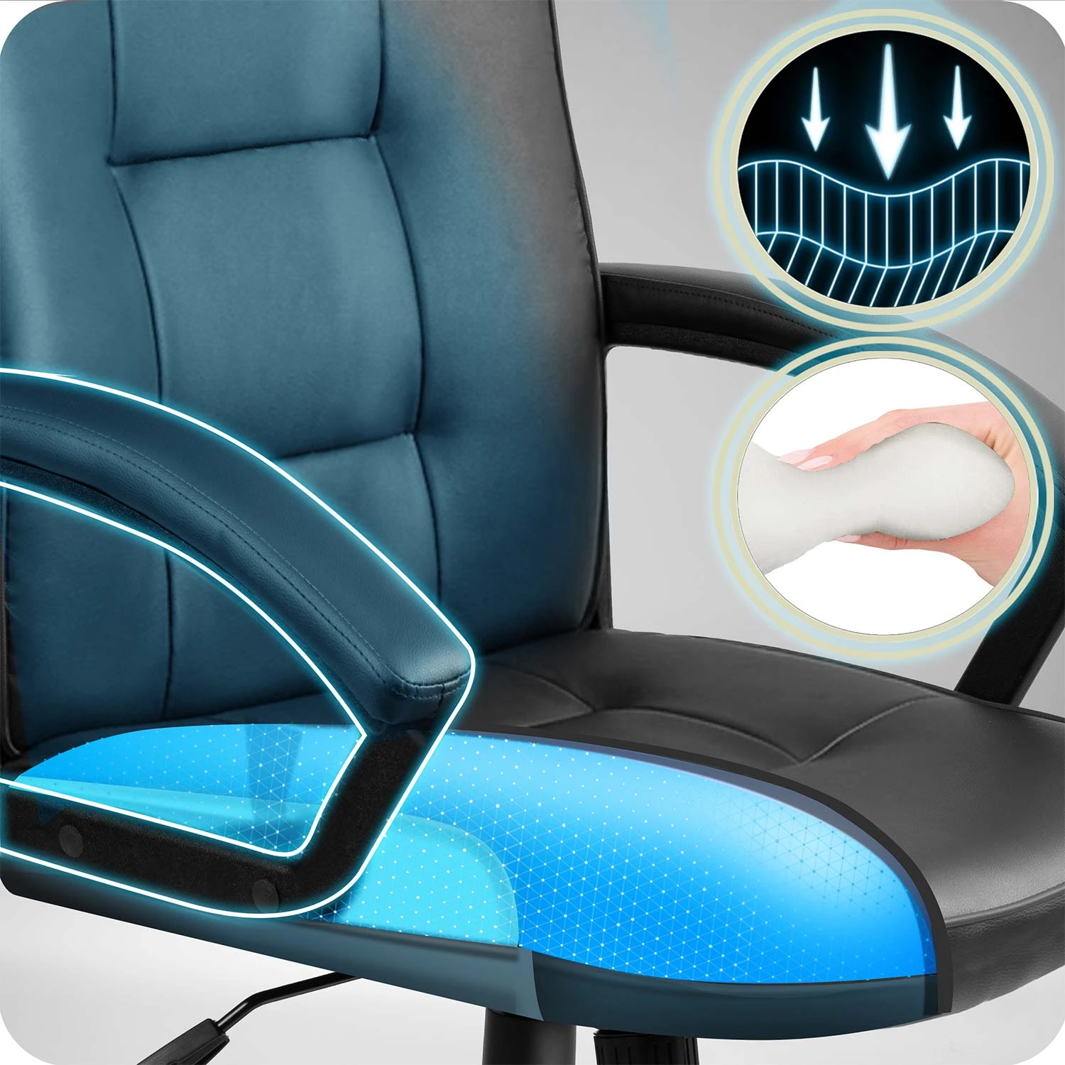 • Ergonomiczne wypełnienie idealnie dopasowuje się do ciała, równomiernie rozkładając nacisk i odciążając plecy podczas całego dnia.