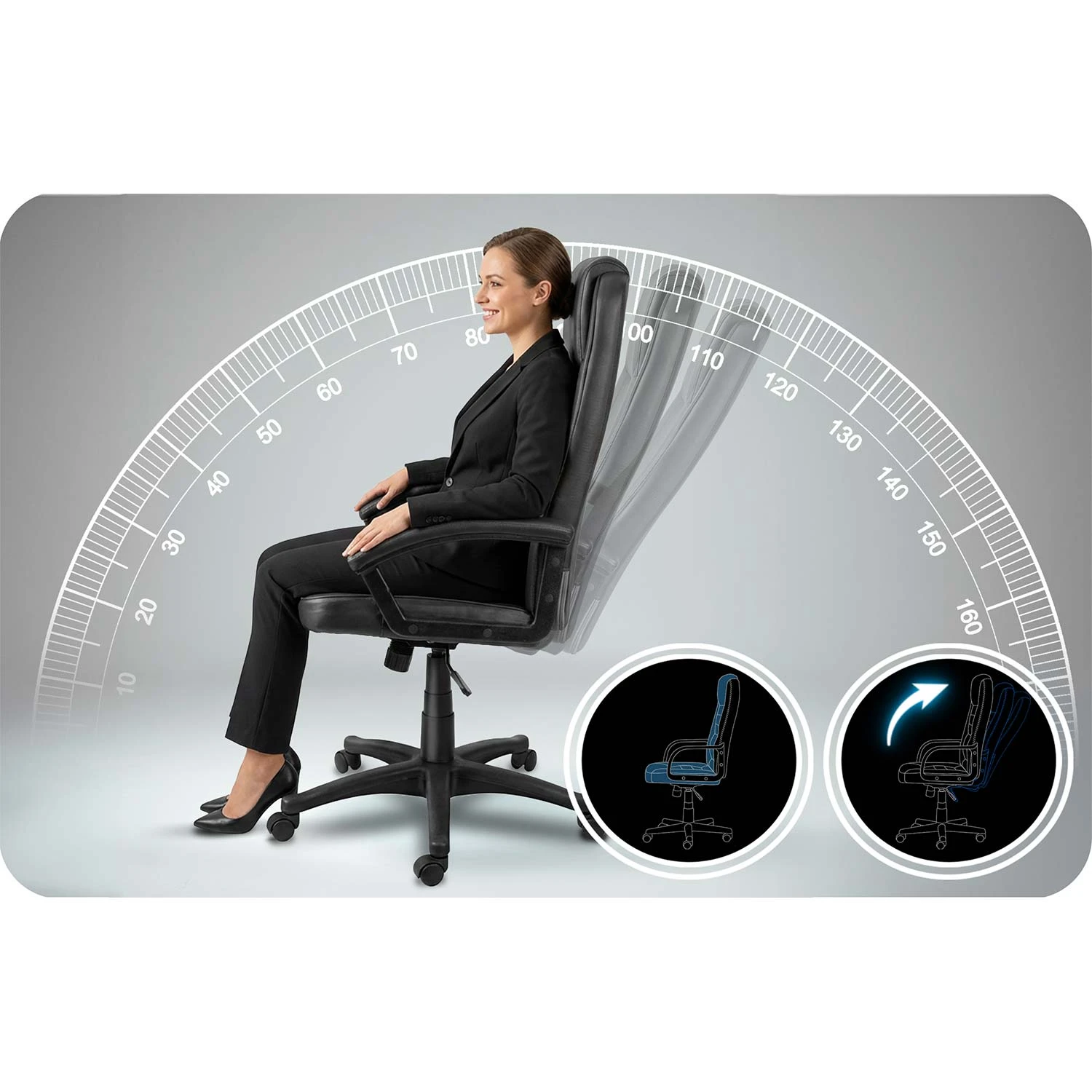 Wystarczy lekko odchylić oparcie, by odciążyć kręgi, zrelaksować mięśnie i na nowo nabrać energii – nawet w trakcie długiego dnia w biurze!