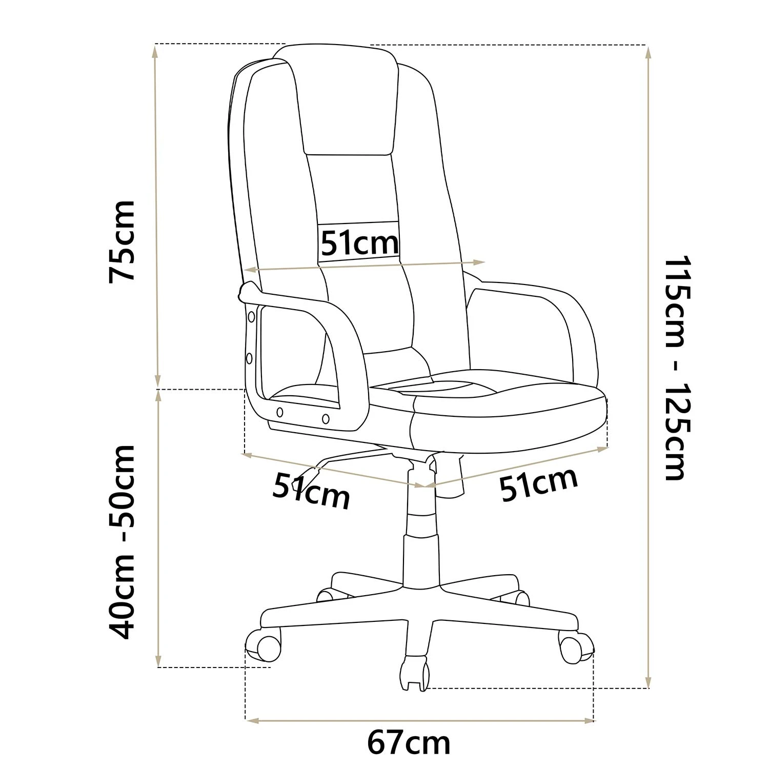 • maksymalna wysokość całkowita: 125 cm,