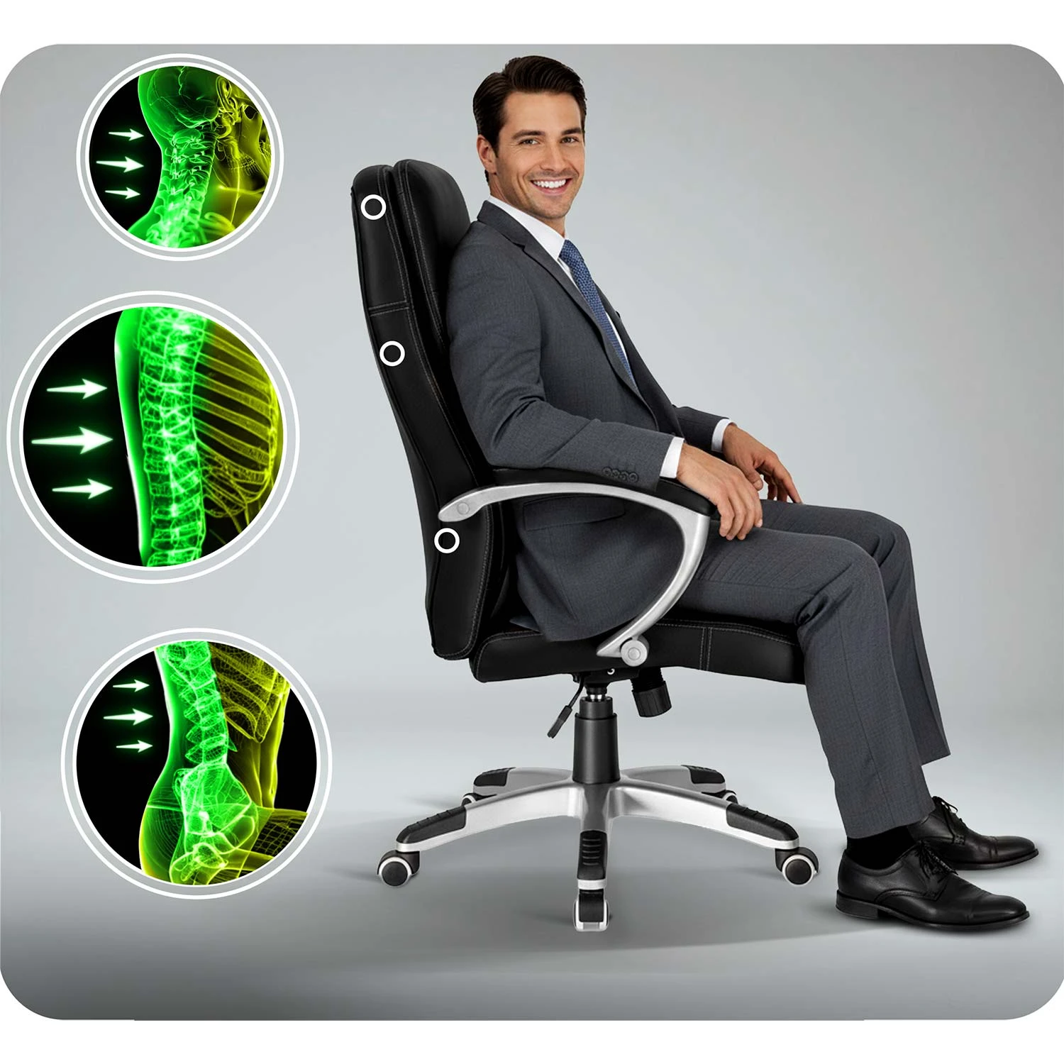Skrojony na miarę wygodny profil minimalizuje napięcie mięśni, zmniejsza ryzyko bólu i poprawia koncentrację w pracy biurowej.