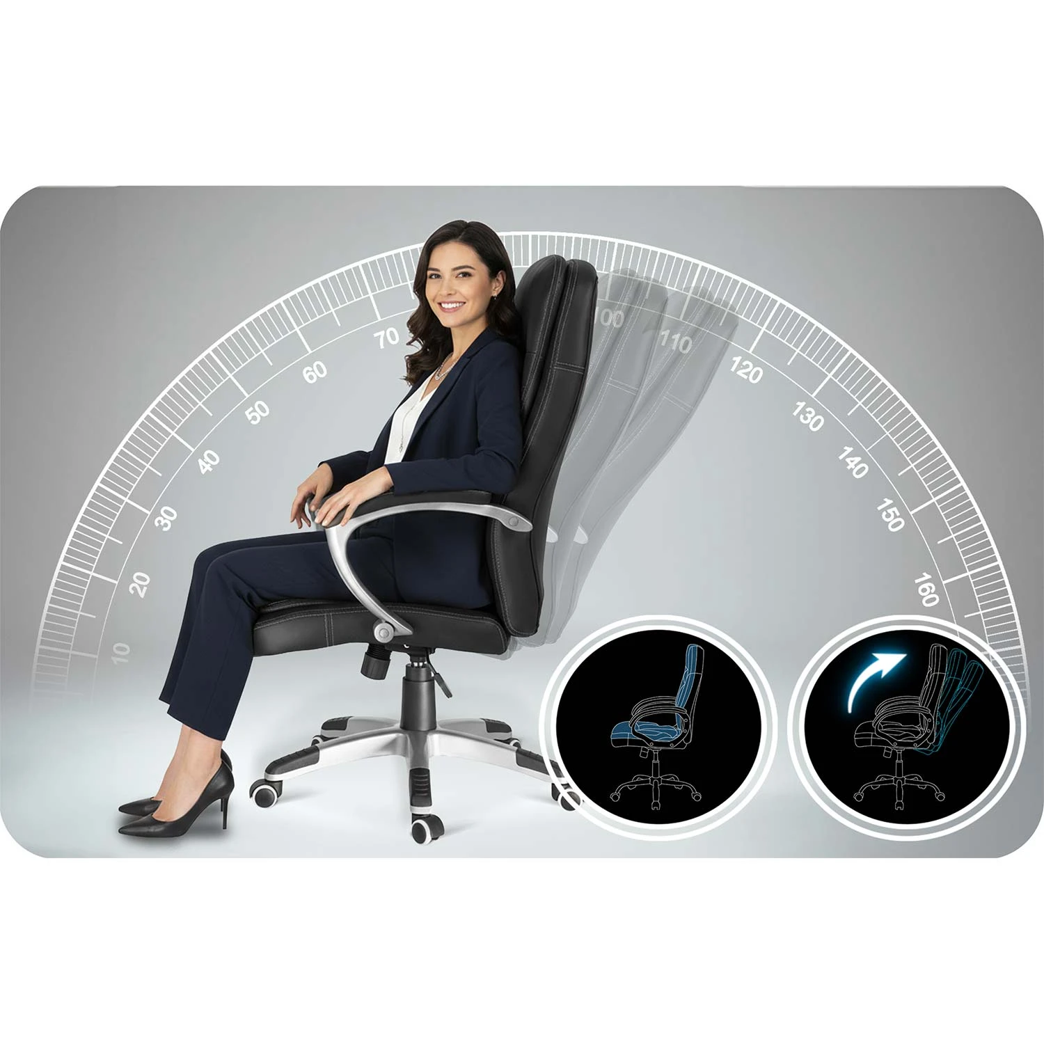 Wystarczy lekko odchylić oparcie, by odciążyć kręgi, zrelaksować mięśnie i na nowo nabrać energii – nawet w trakcie długiego dnia w biurze!