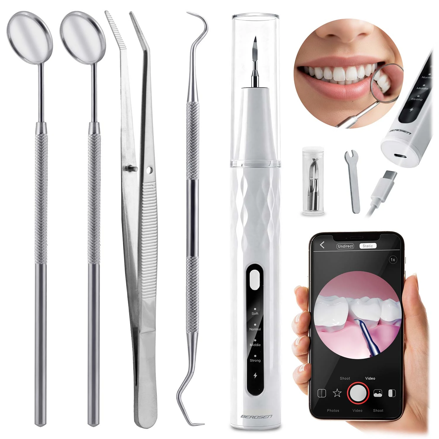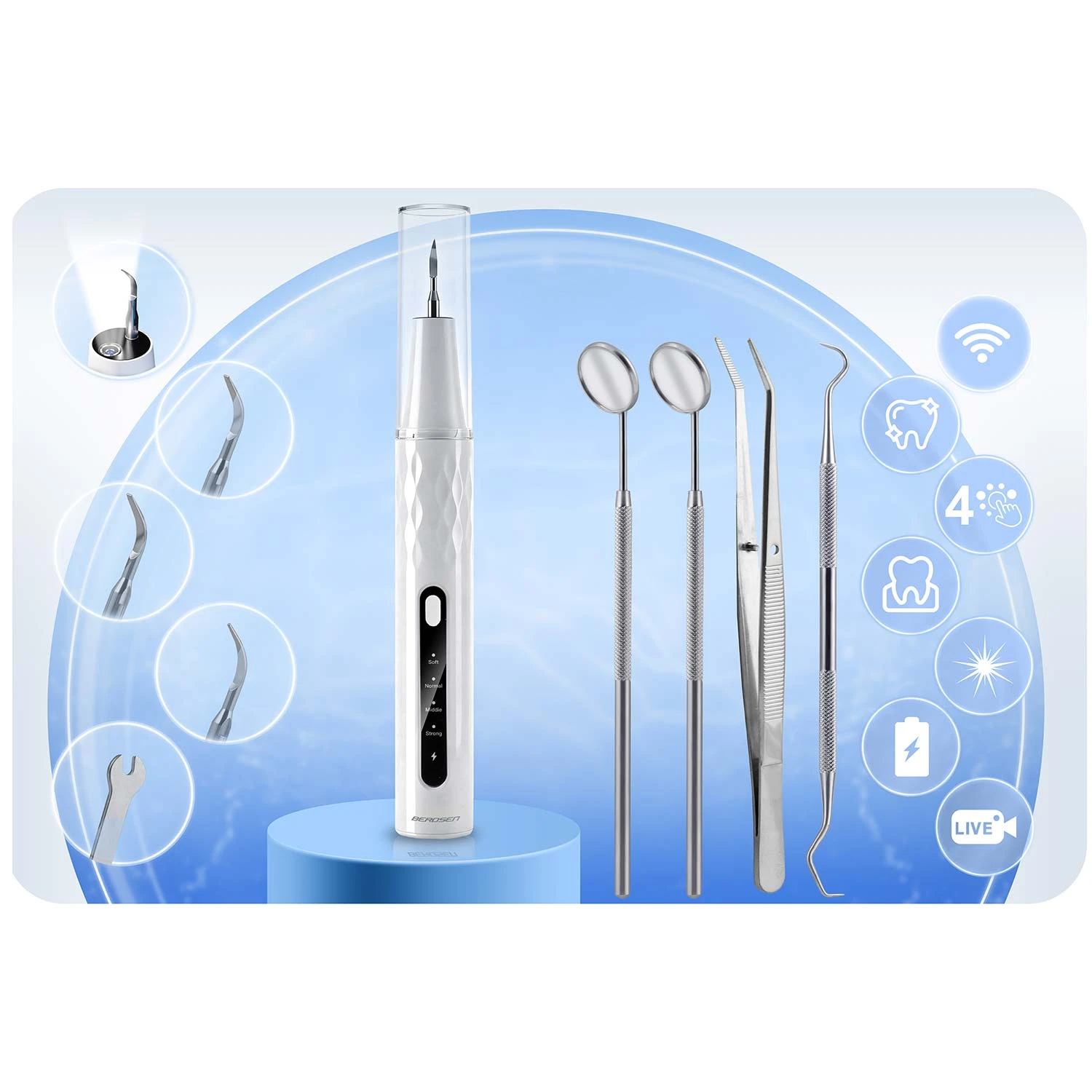 ✅ Bogaty i kompletny zestaw narzędzi dentystycznych: 2 x lusterko, skrobak dentystyczny, penseta oraz kluczyk do zmieniania głowic. Idealny dla osoób początkujących. Kompleksowe czyszczenie w domowym zaciszu.