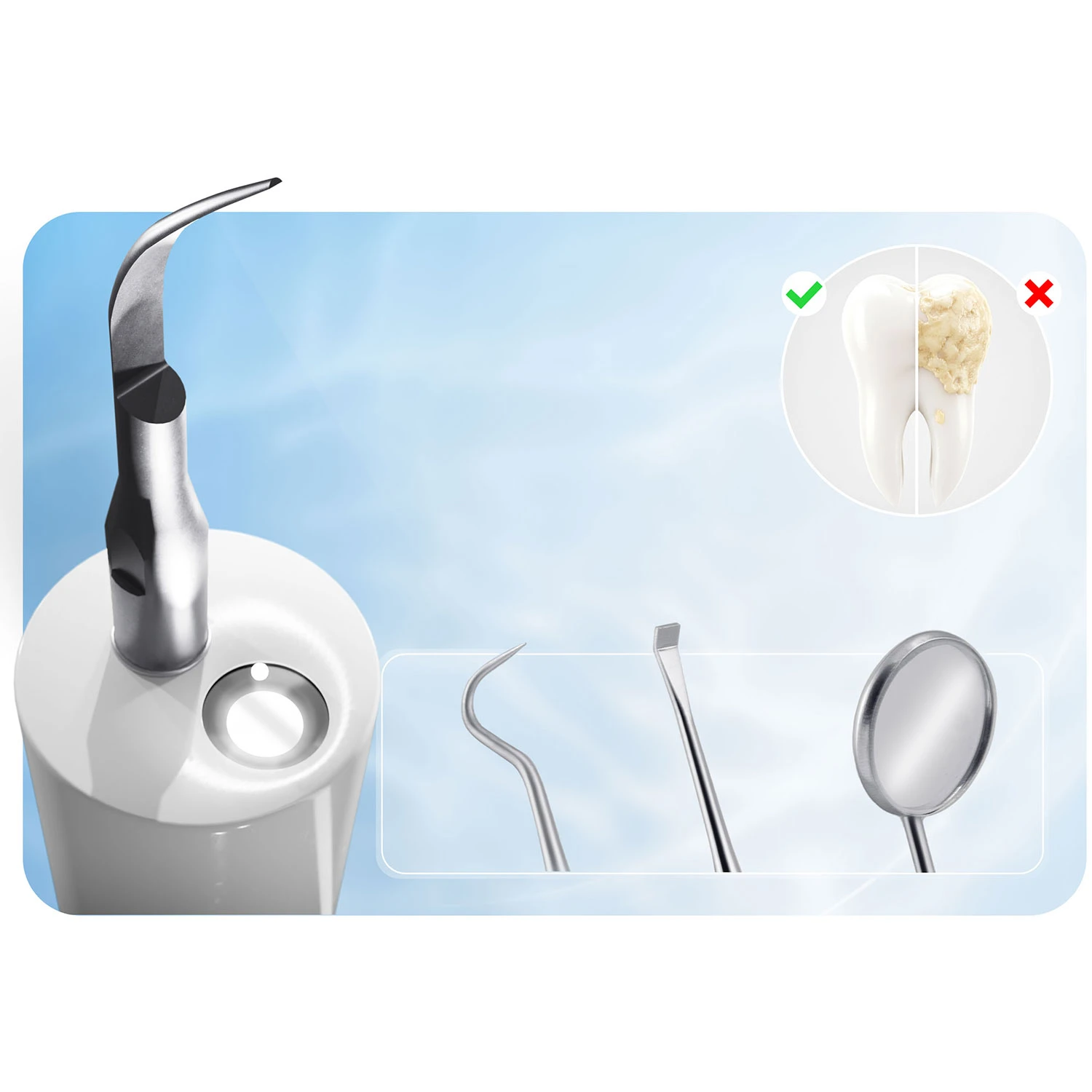 ✅ Bogaty i kompletny zestaw narzędzi dentystycznych: lusterko, skrobak dentystyczny, sonda oraz kluczyk do zmieniania głowic. Idealny dla osoób początkujących. Kompleksowe czyszczenie w domowym zaciszu.