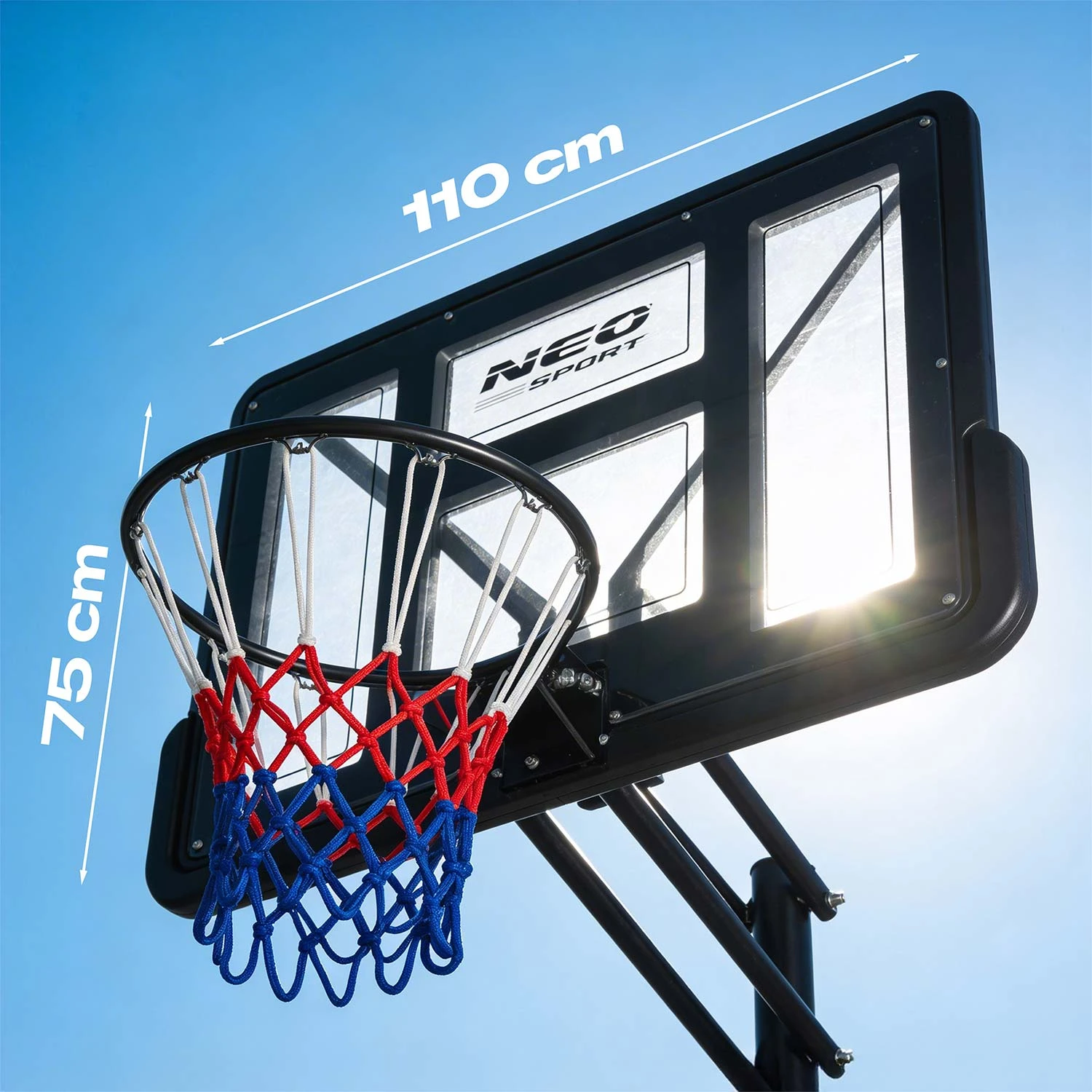 Złap za piłkę i rozkręć grę – gdzie chcesz, kiedy chcesz. Składany, mobilny kosz Neo-Sport to pełna wolność grania: od podwórka po parking.