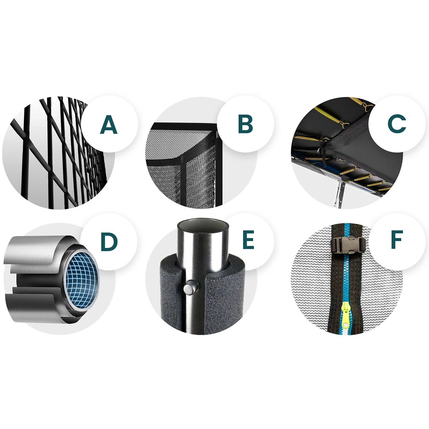 Zastosowaliśmy wydłużone i mocno naprężone sprężyny o zwiększonej elastyczności – dla jeszcze lepszego odbicia i komfortu skakania.