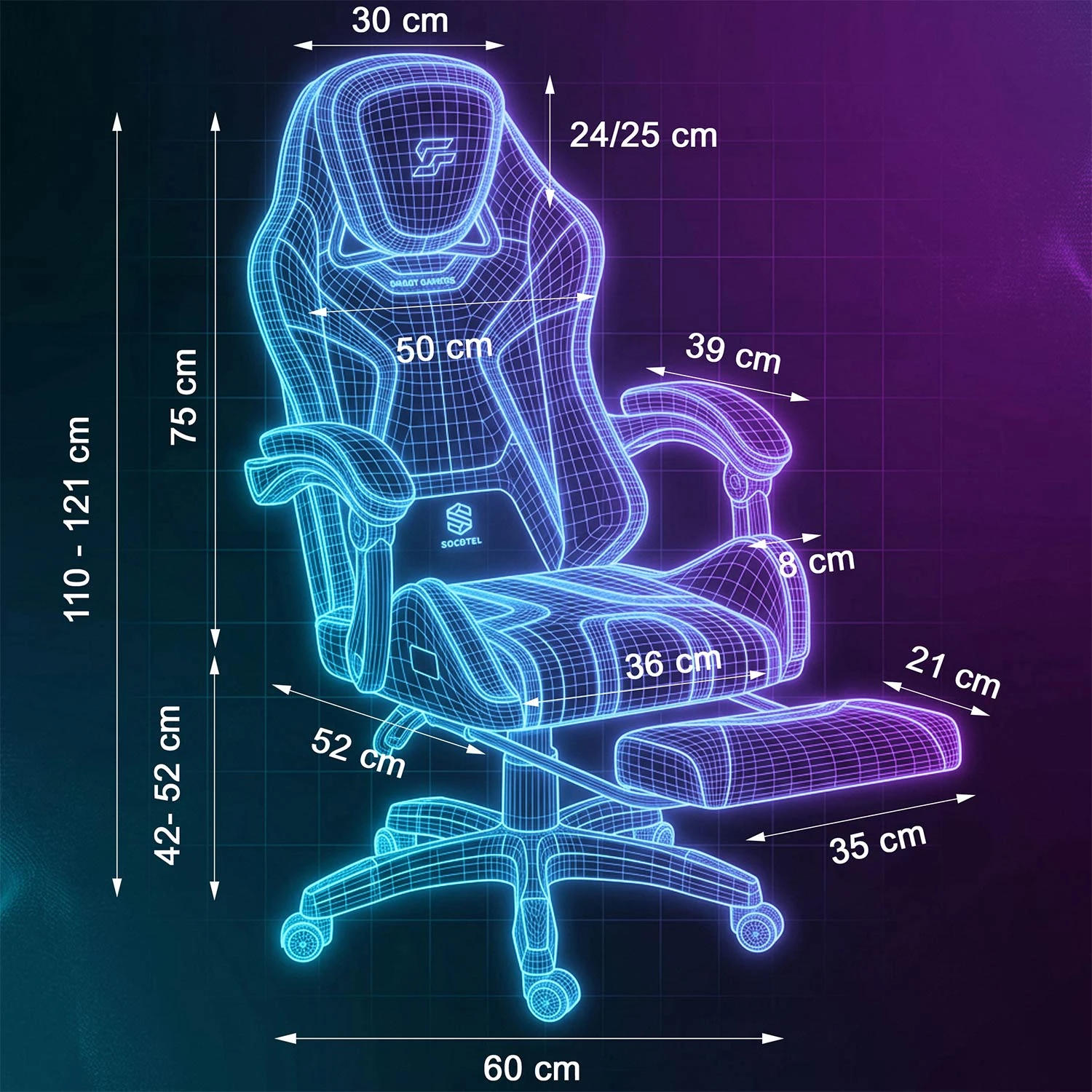Mechanizm Soft SWING™ pozwala na płynne odchylenie oparcia nawet do 140°, dając Ci swobodę zmiany pozycji w trakcie gry i relaksu. Pracujesz w 90°, odpoczywasz w 125°, regenerujesz w 140° — bez szarpnięć, bez luzów, z pełną stabilnością.