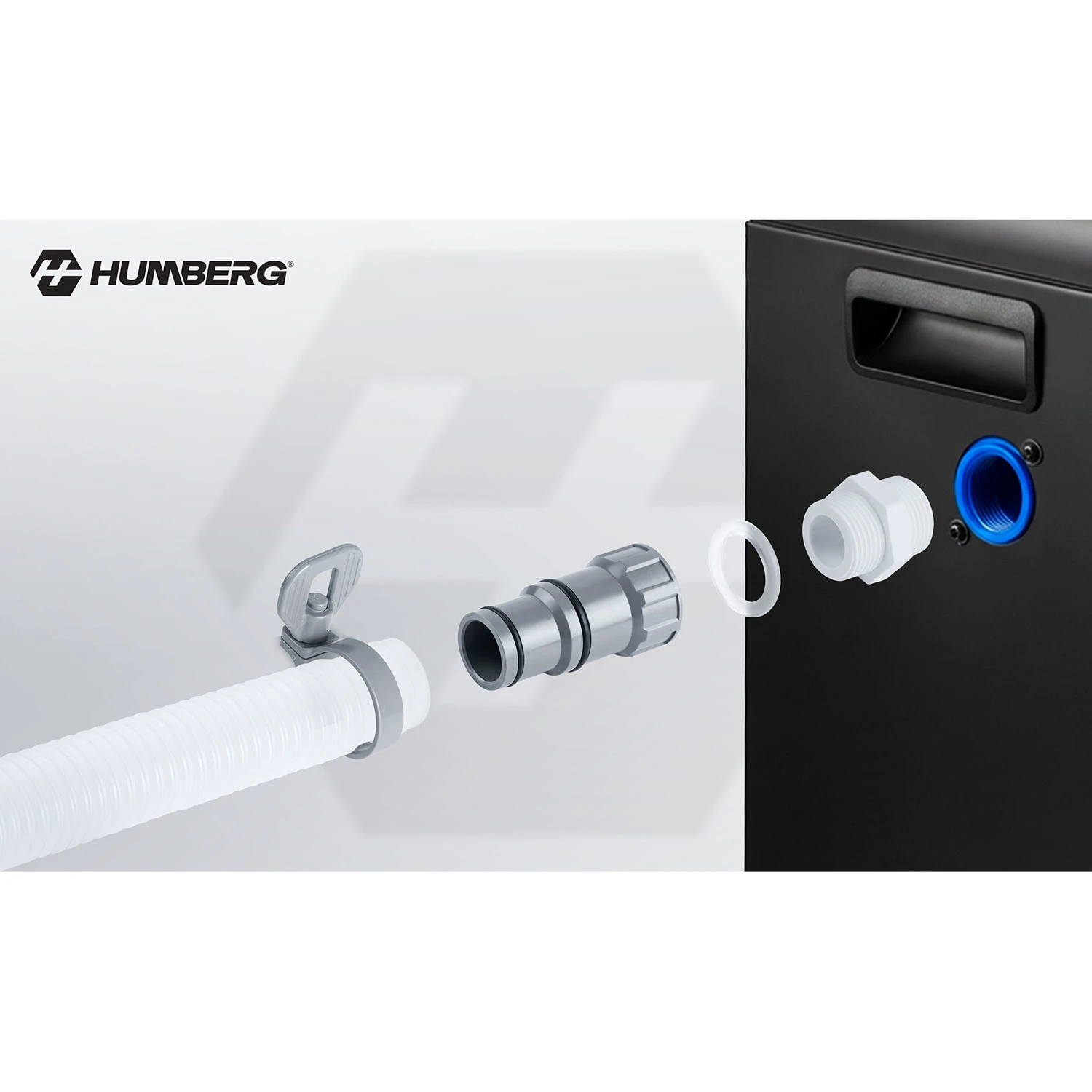 W zestawie otrzymujesz także złączki oraz długą rurę, które umożliwiają szybkie i wygodne podłączenie pompy do instalacji basenowej.