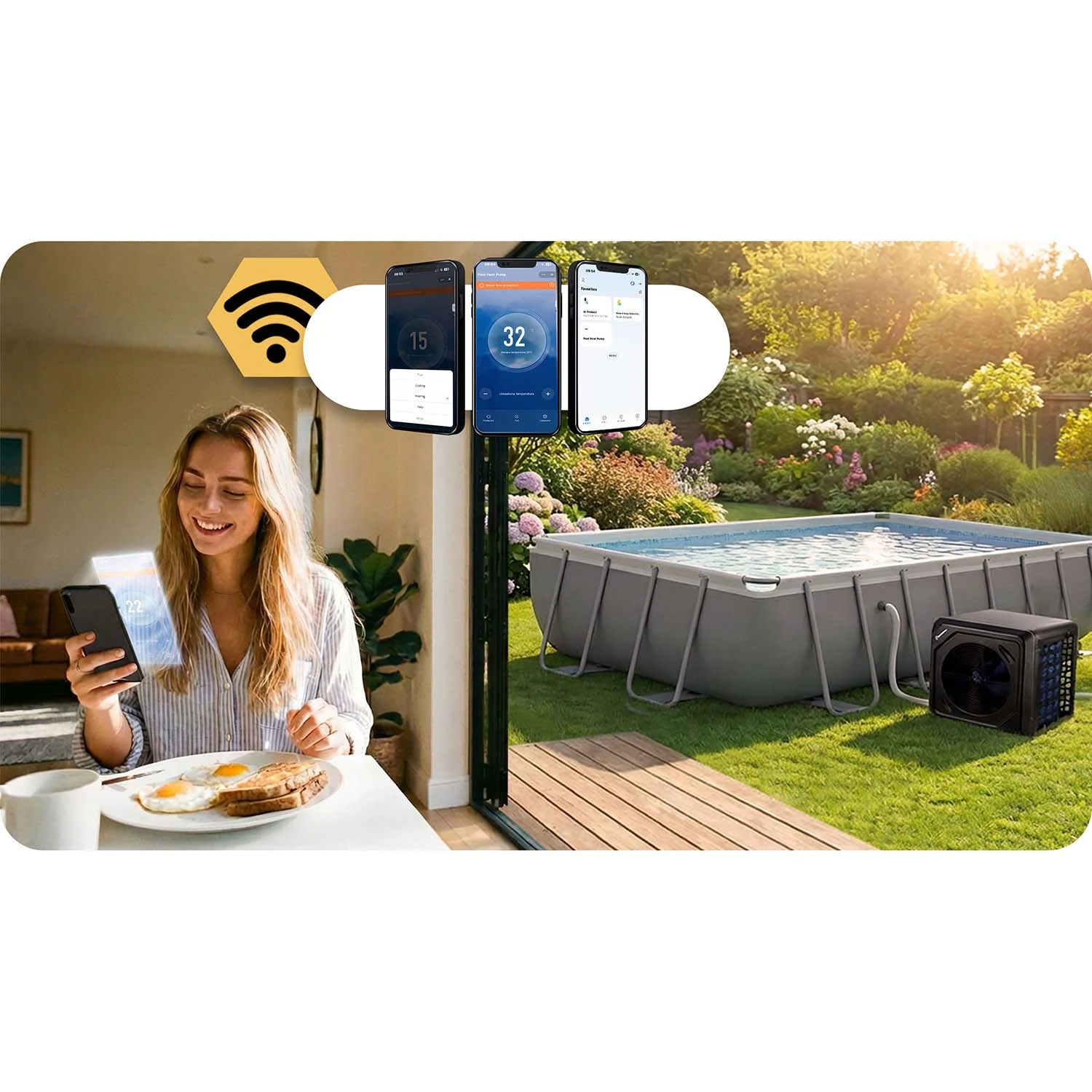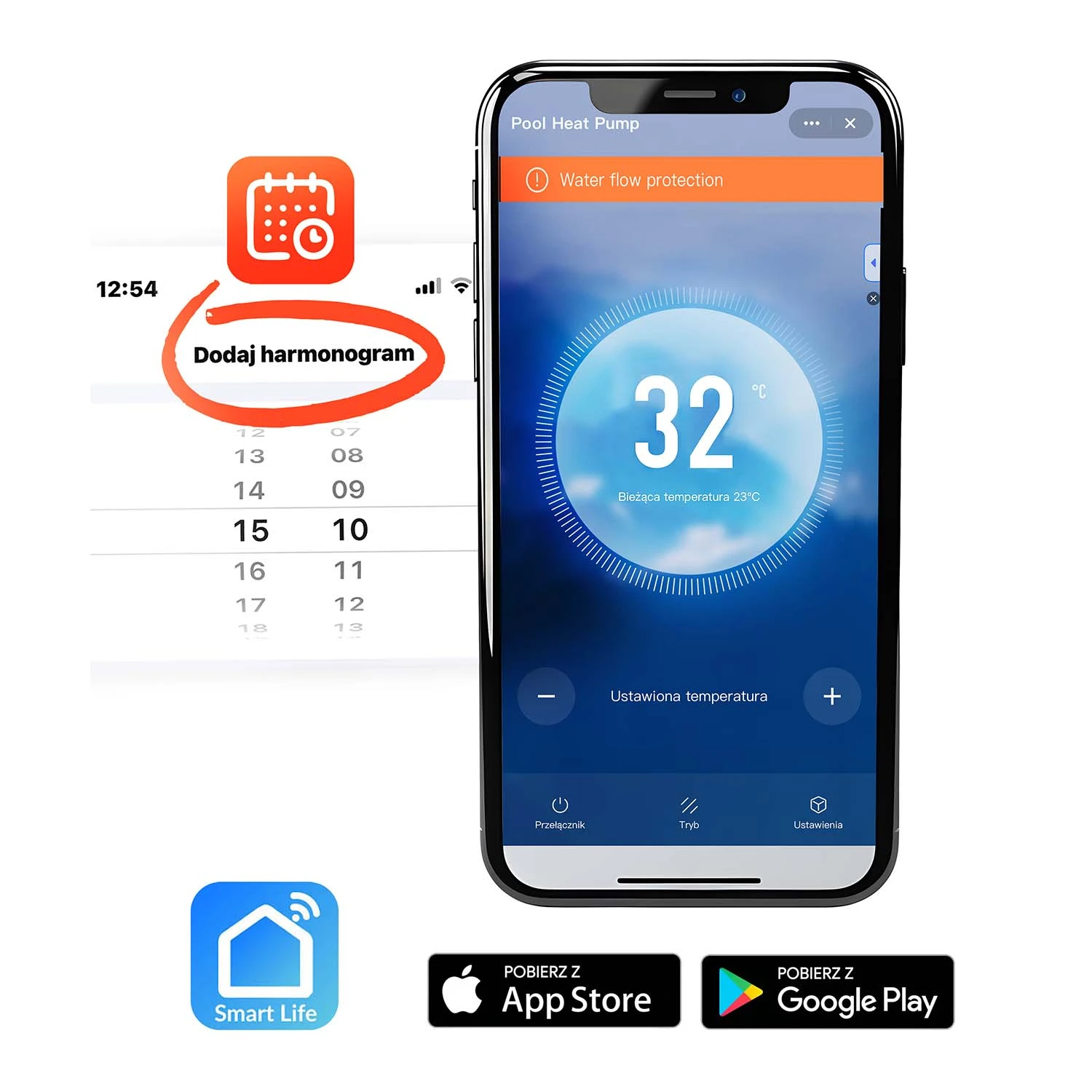 Dzięki dedykowanej aplikacji możesz zdalnie ustawić temperaturę wody, a także zaplanować pracę pompy poprzez harmonogram w kalendarzu. Pozwala to automatycznie uruchamiać ogrzewanie w wybranych godzinach i utrzymywać idealną temperaturę wtedy, gdy chcesz korzystać z basenu.