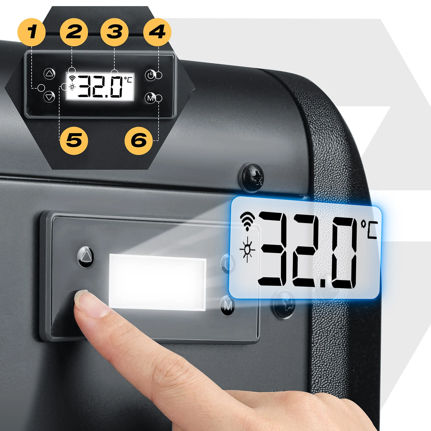 1️⃣ Przyciski ustawiania temperatury.