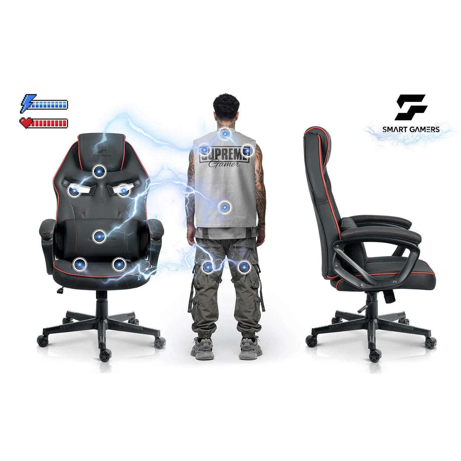 🎯 Ergonomia, stabilność i gamingowy styl w jednym fotelu. Bez kompromisów.
