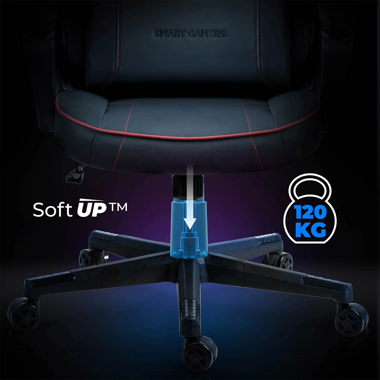 Mechanizm Soft UP™ umożliwia precyzyjną regulację wysokości fotela gamingowego, dzięki czemu idealnie dopasujesz go do biurka i swojego wzrostu. Wzmocniona konstrukcja oraz wytrzymałość do 120 kg gwarantują stabilność i bezpieczeństwo nawet podczas intensywnego użytkowania.