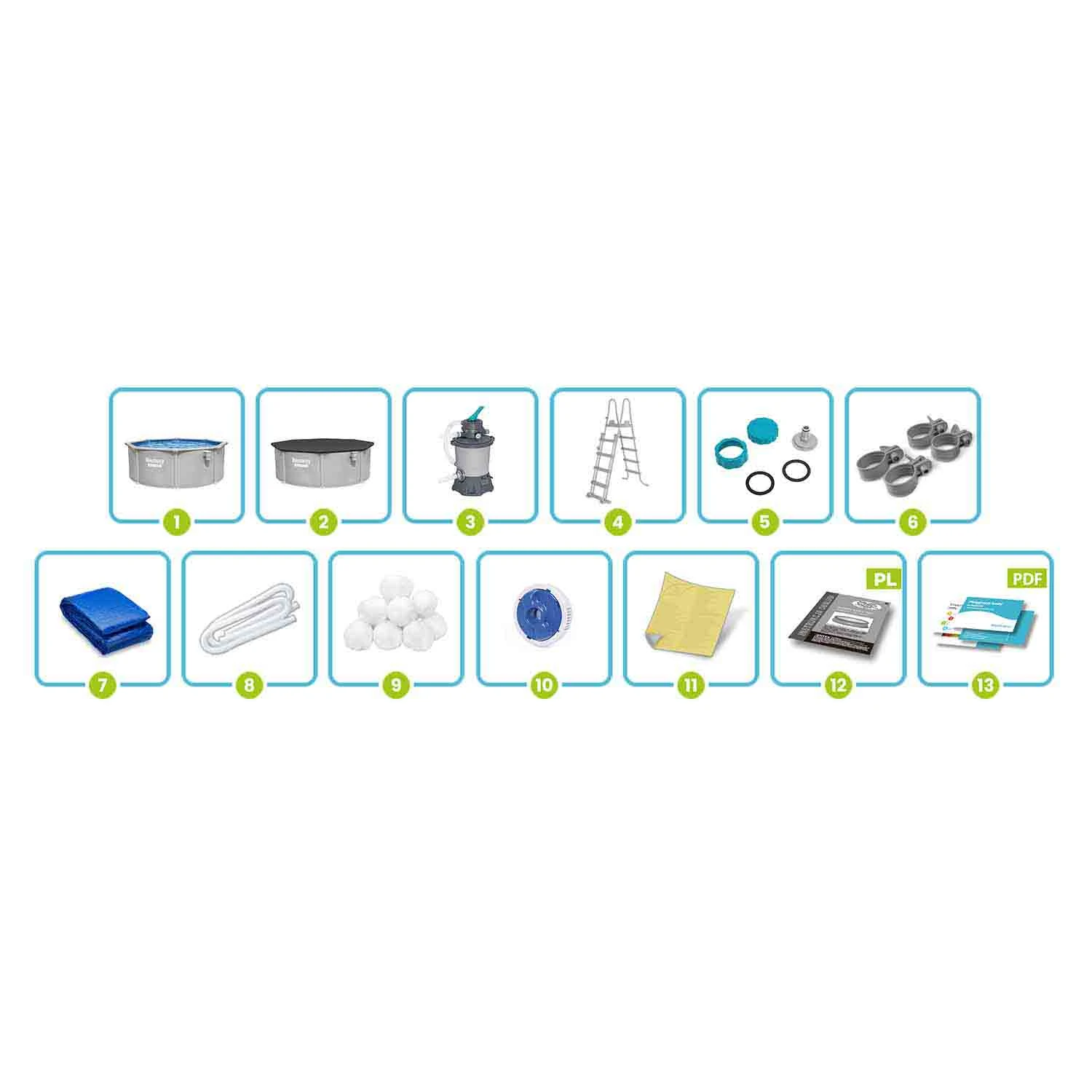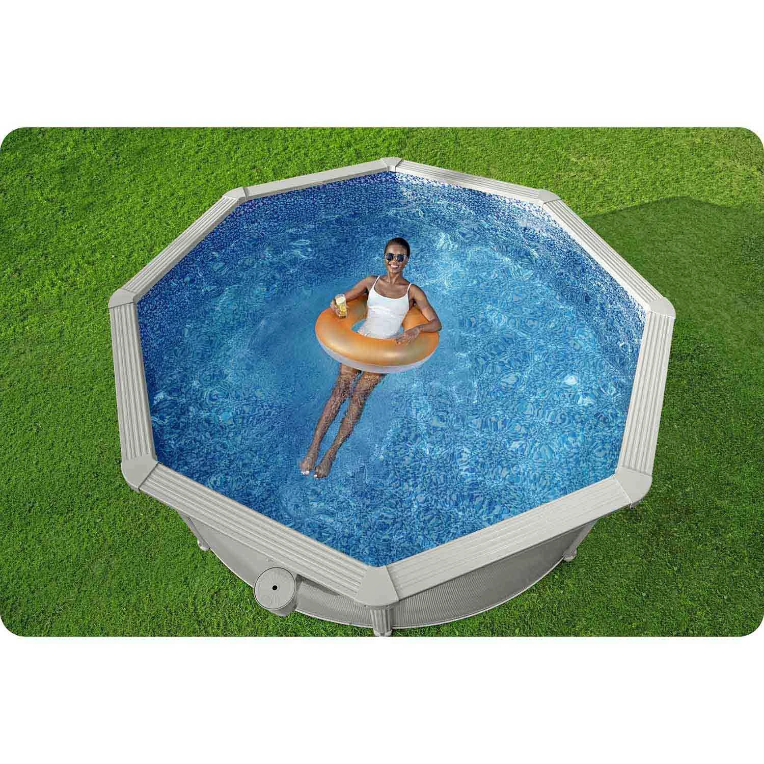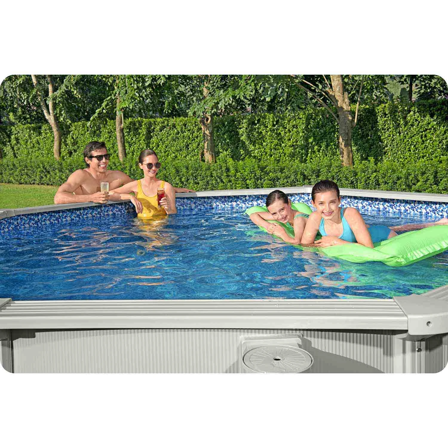 • Solidna konstrukcja panelowa – stalowe panele zapewniają wyjątkową stabilność i trwałość basenu.