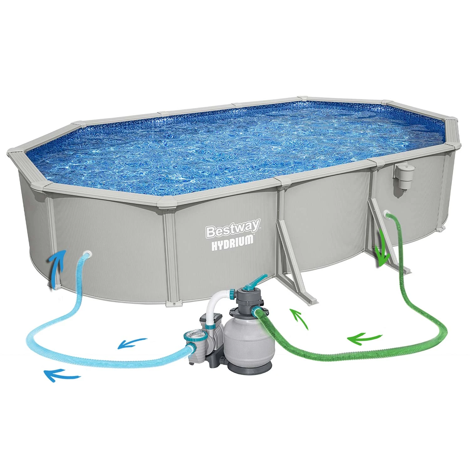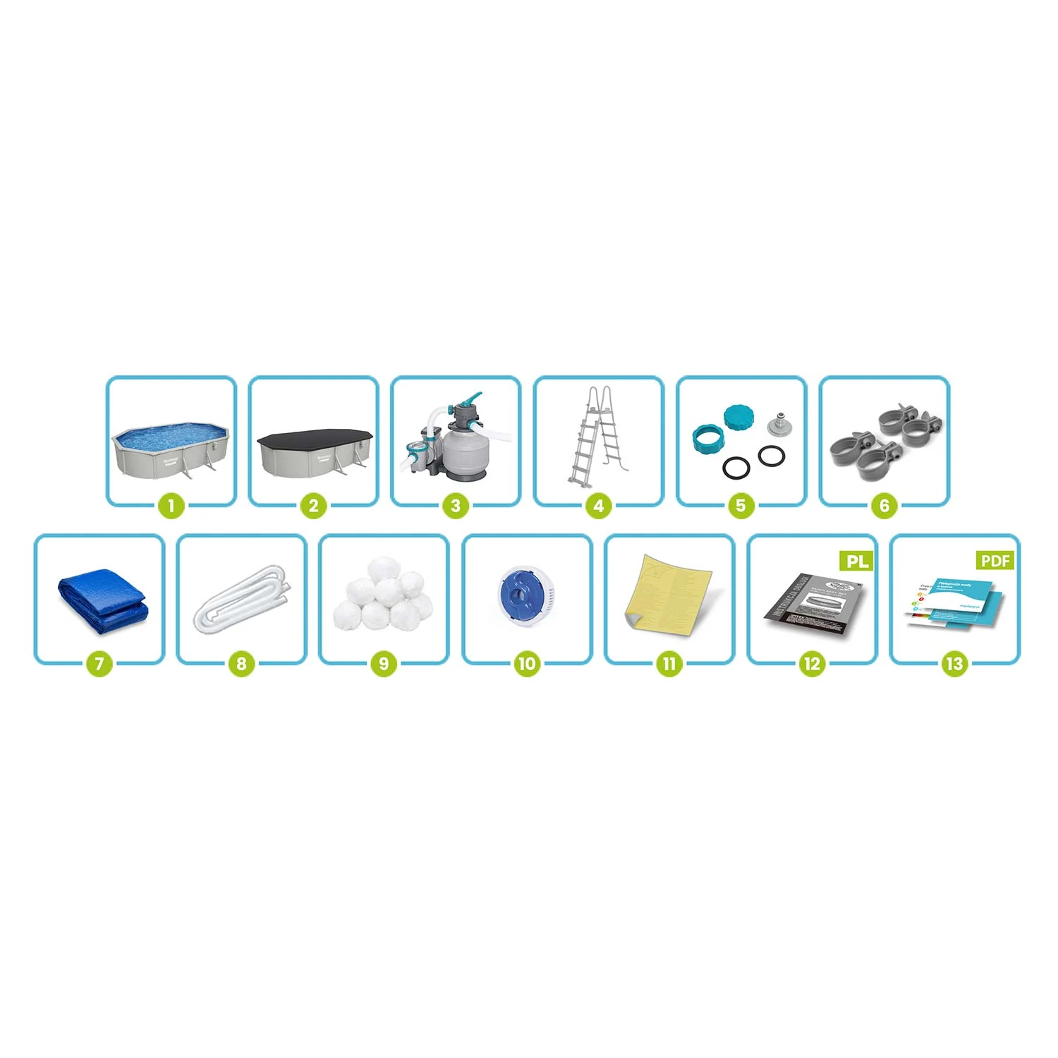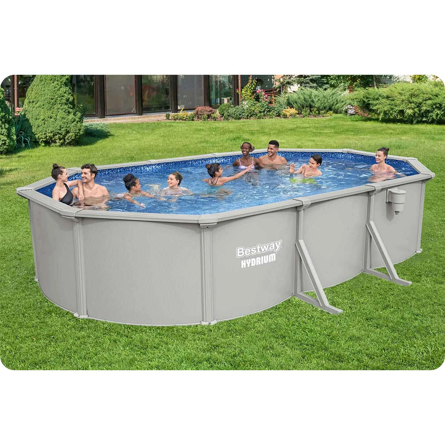 • Solidna konstrukcja panelowa – stalowe panele zapewniają wyjątkową stabilność i trwałość basenu.