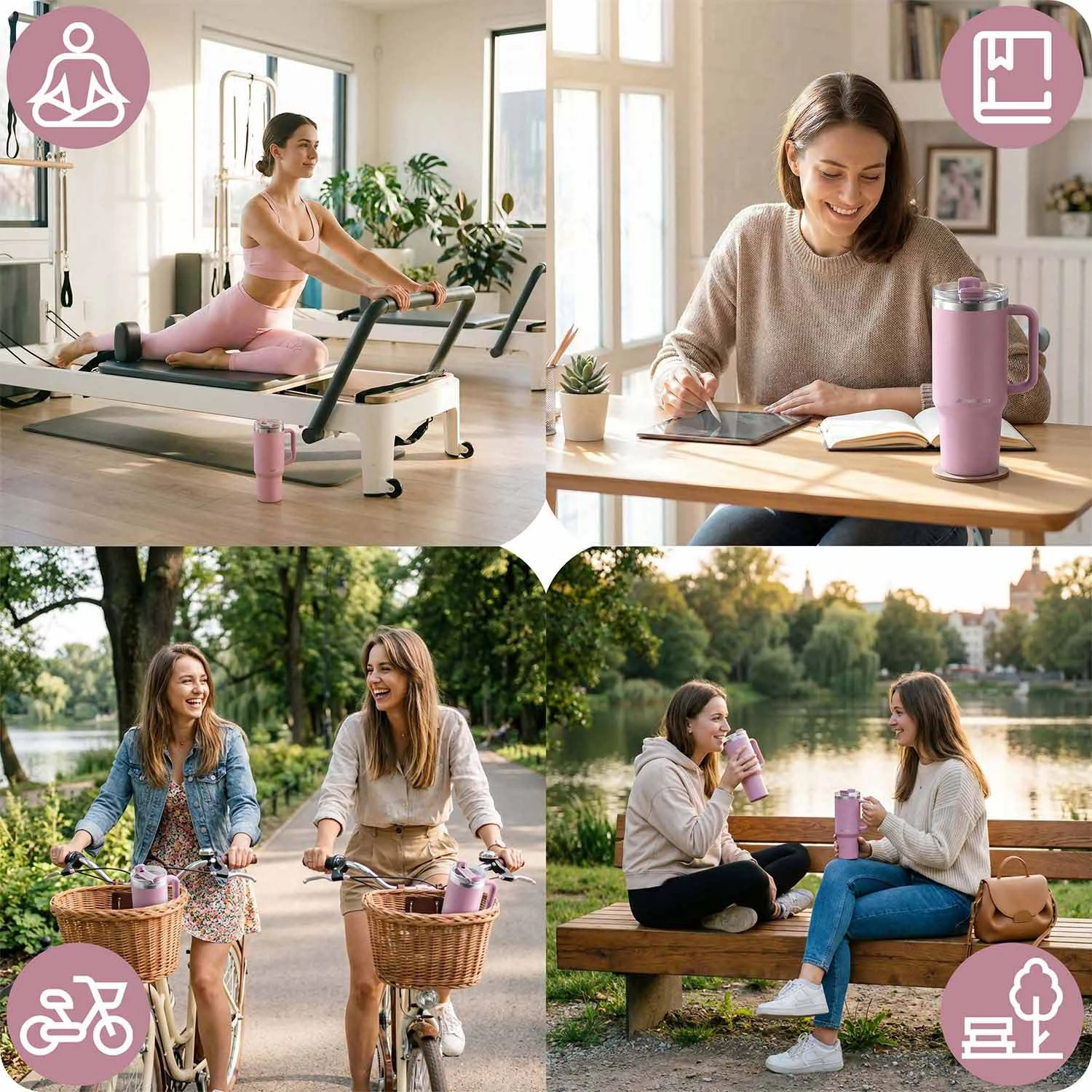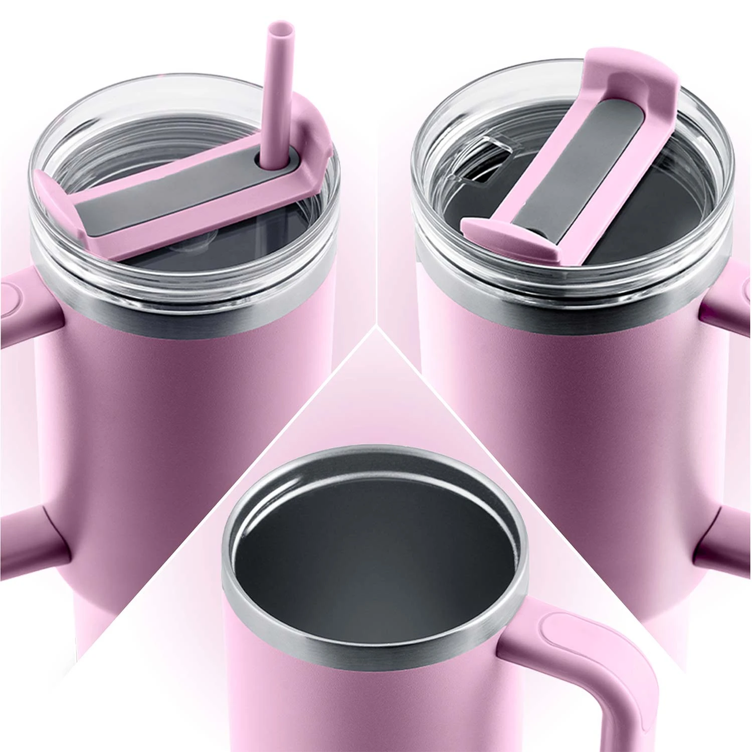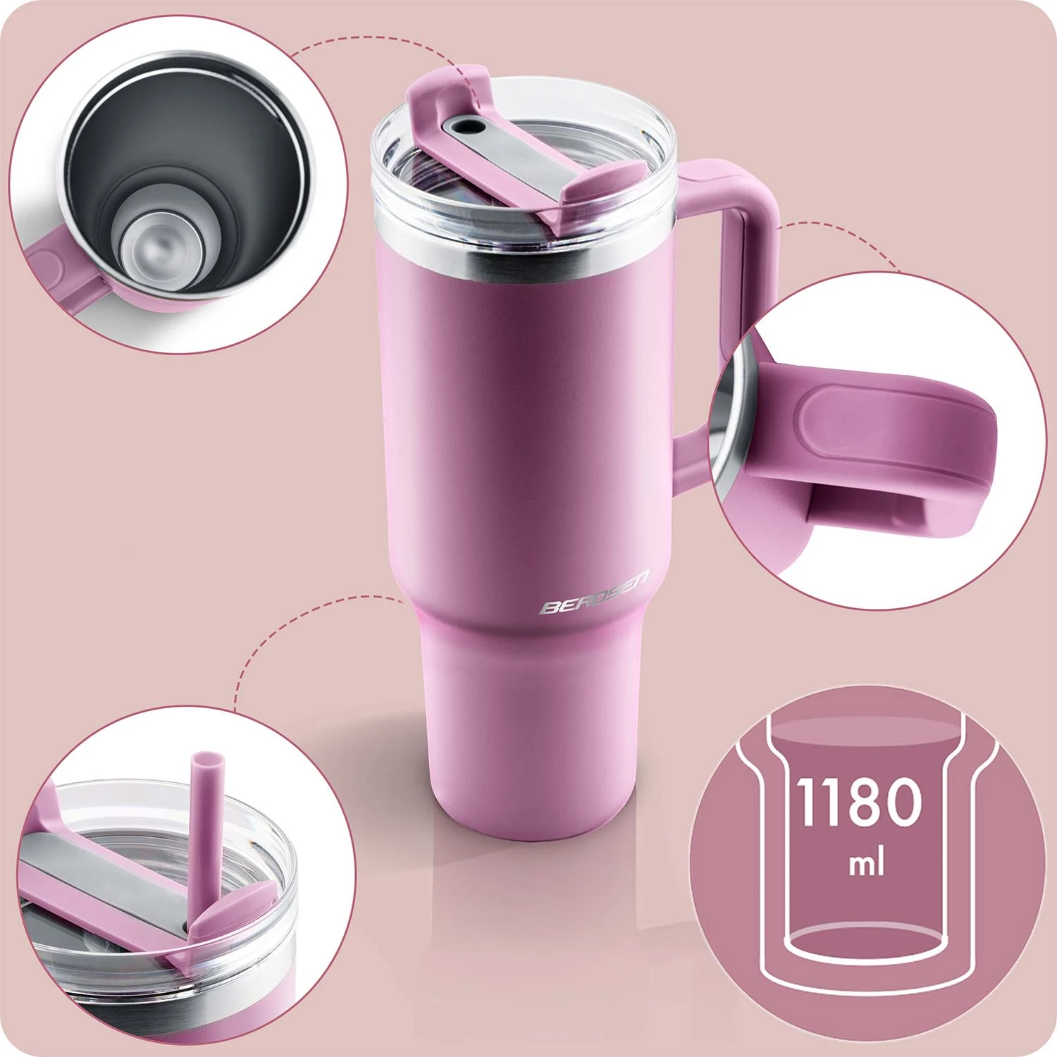 Termos próżniowy kubek ze słomką 1180 ml Berdsen różowy
